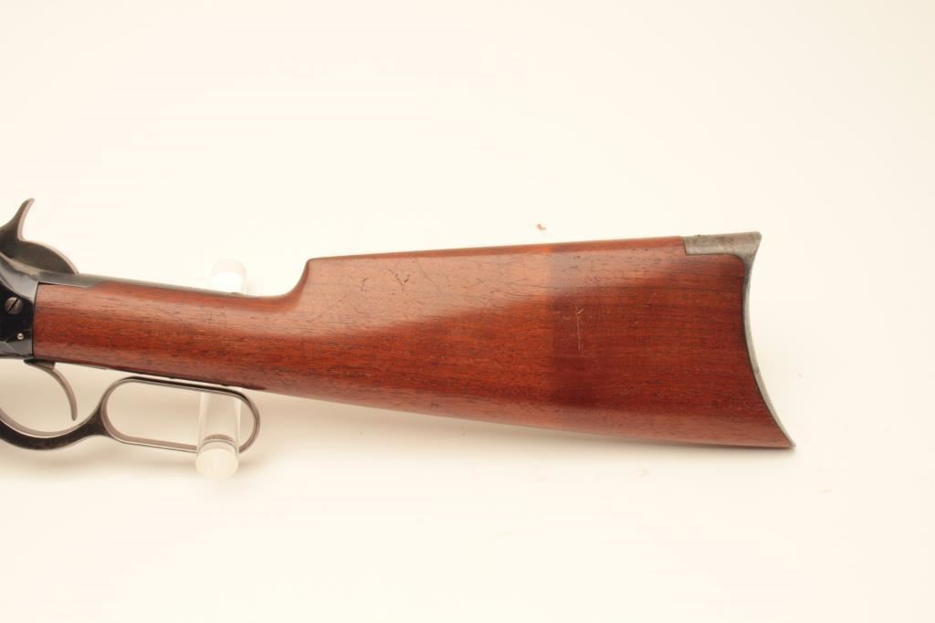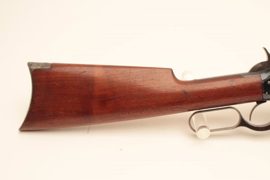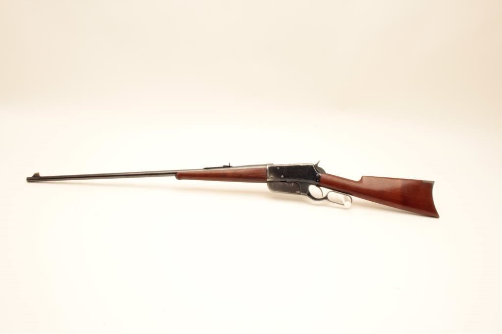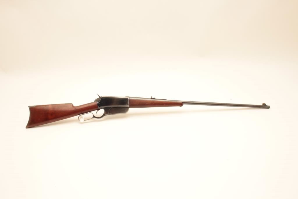 Early Winchester Model 1895 “Flatside” lever action rifle, .30 Gov. caliber, 28” round barrel, blued finish, wood stocks, S/N 1673; overall fine condition with majority of original finish remaining, near fine bore, crisp action, sharp markings and fine wood. Accompanied by a factory letter confirming caliber, round barrel and plain trigger; received in warehouse on Oct. 27, 1896 and shipped from warehouse on Nov. 5, 1896 to order number 22944; returned by C.W. Cullen and Co. on December 4, 1896, order number 24885. (Antique). Est.: $3,500-$7,000.
