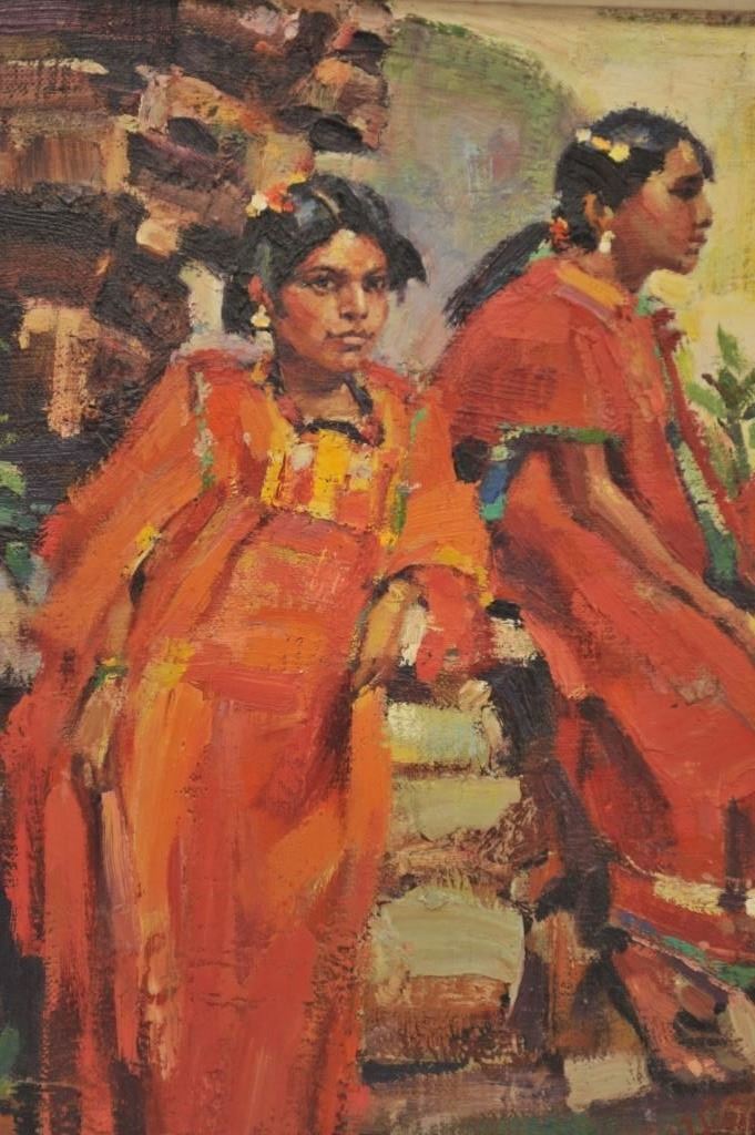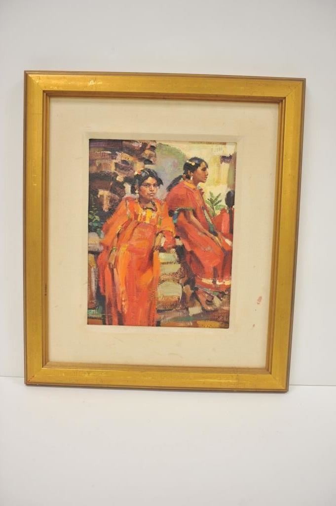 Framed oil painting of young ladies by Gary Schildt; approximately 23” x 20” overall; very colorful and nicely done. Est.: $400-$800.