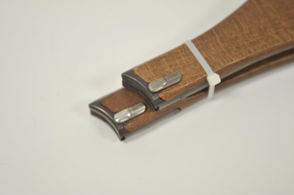 Lot of two reproduction wooden stocks for Luger pistols. The two stocks are older and are of a good quality. The two stocks are 12 ½” and 13 ½” respectively with small storage marks but are otherwise in very good condition. Est.: $400-$800.