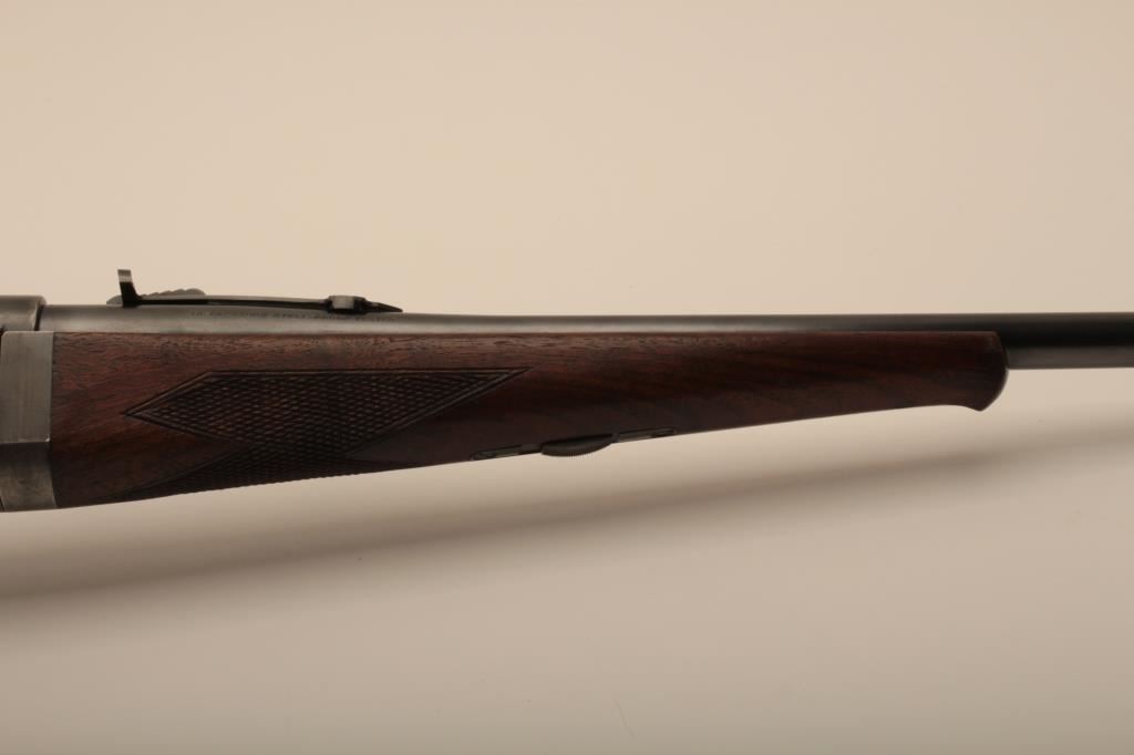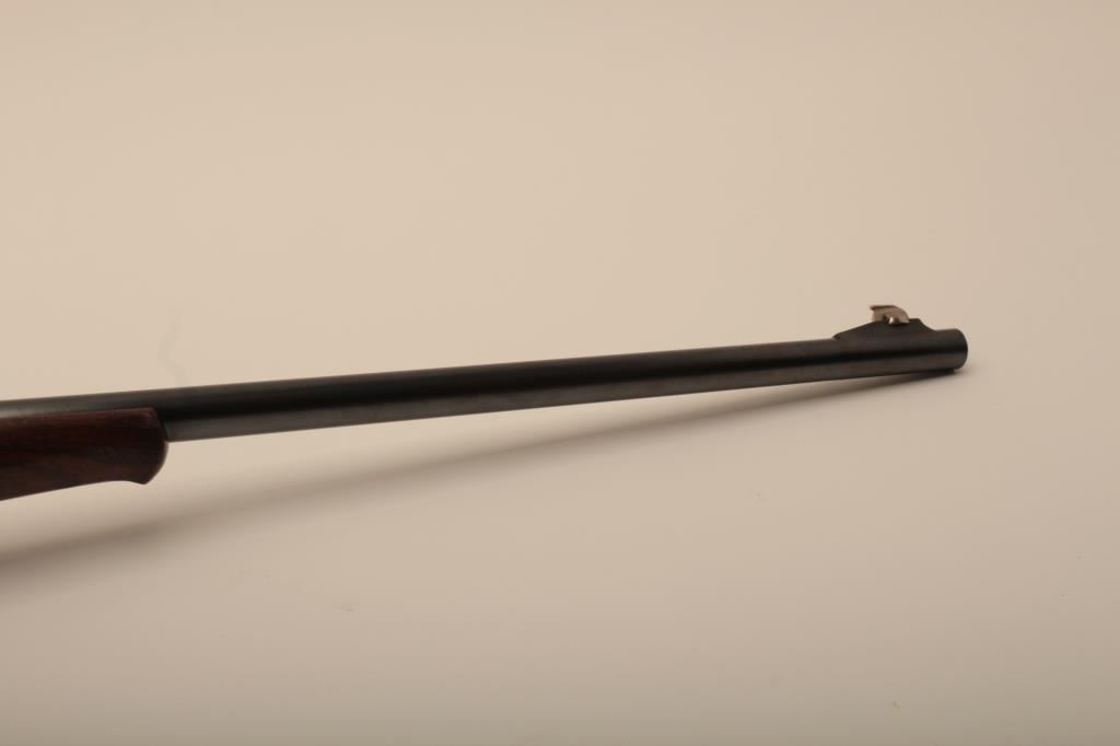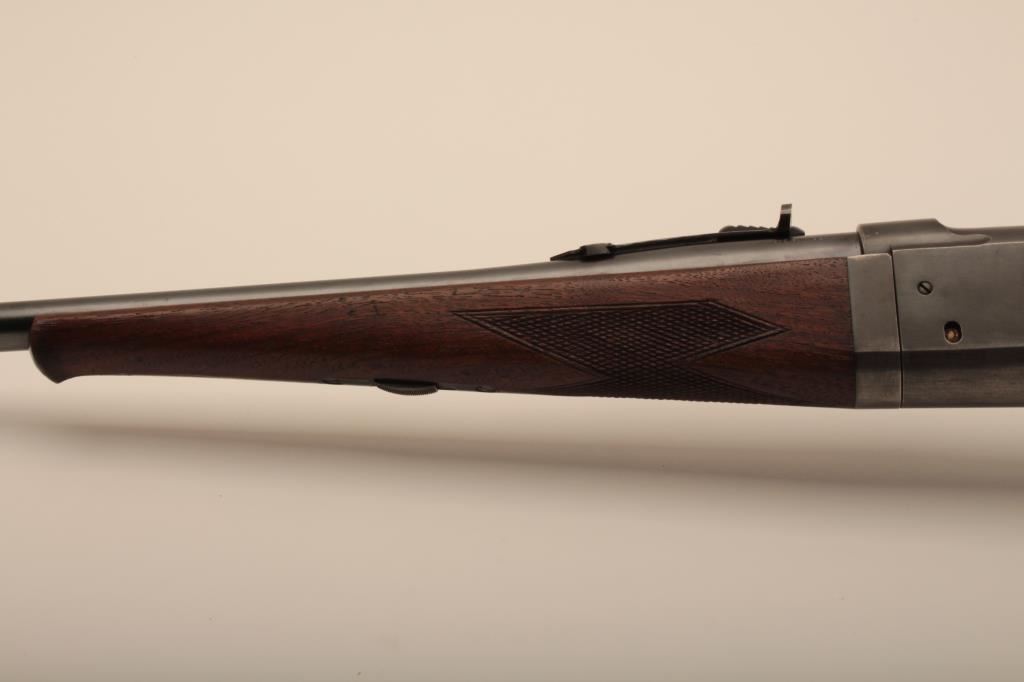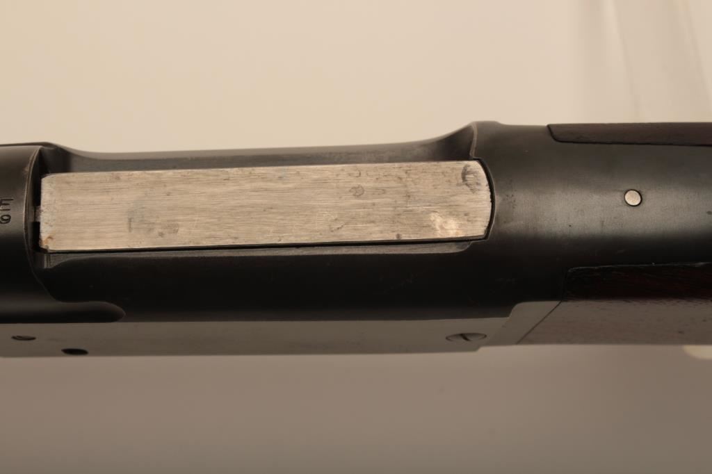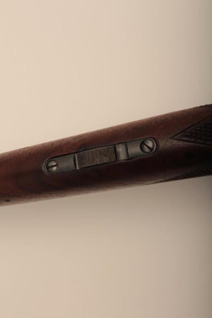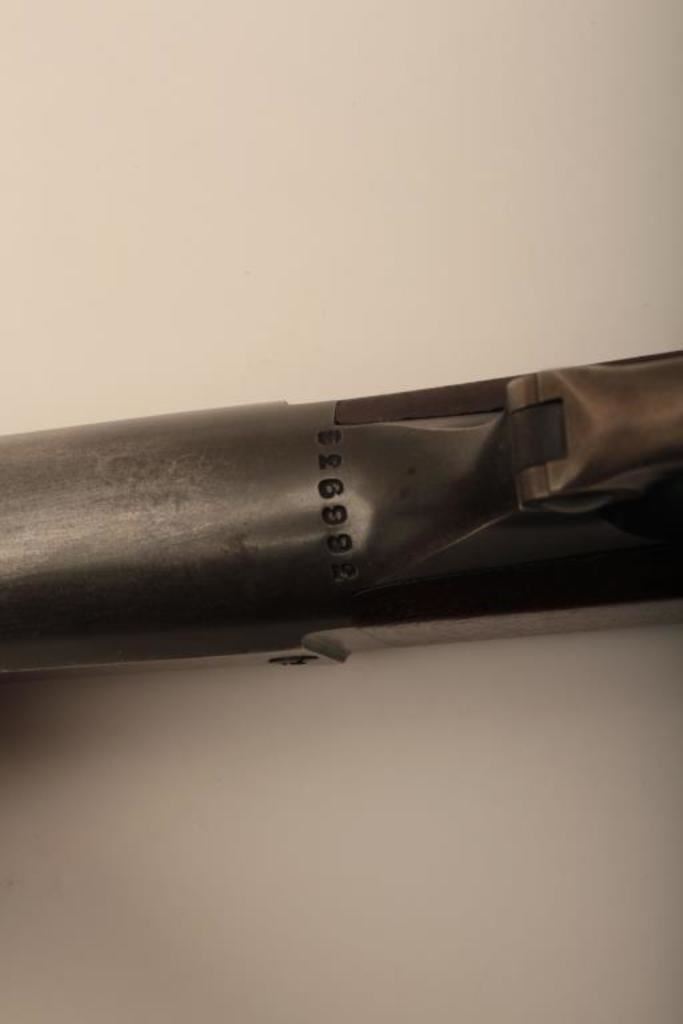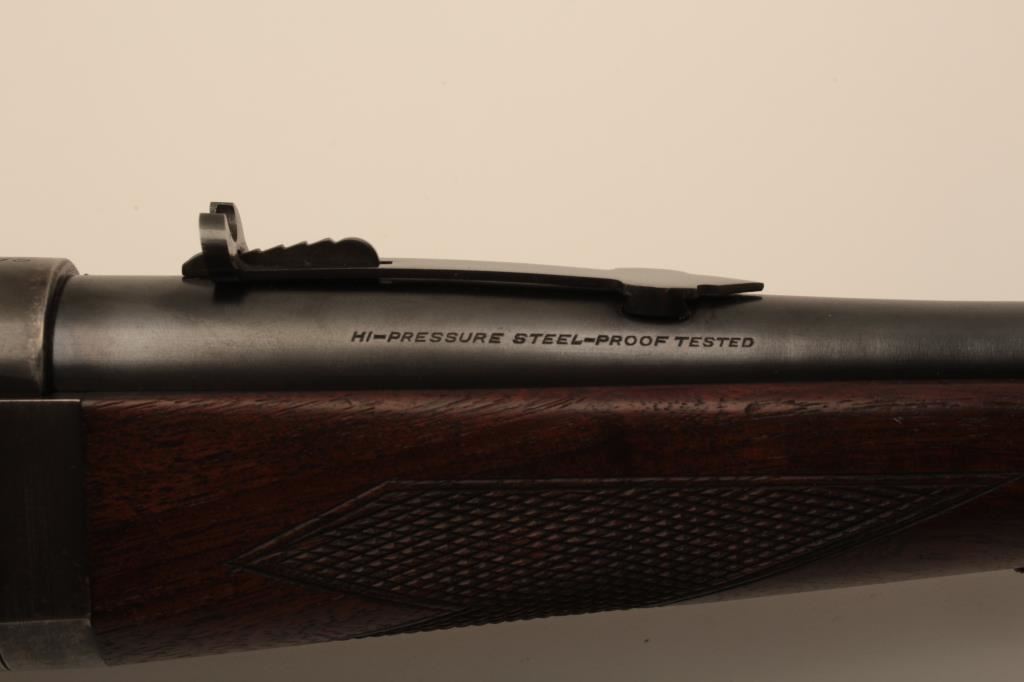 Savage Model 99 Takedown lever action rifle, .300 Savage caliber, Serial #366936. The rifle is in fine overall condition with a 24” round barrel with a ramped blade front sight and standard rear sight. The metal surfaces retain the majority of their blue finish with small mars on the barrel. The receiver shows thinning of the finish on the underside and several small scratches. The rifle features the brass shell counter and shows beautiful, vivid case hardening on the lever, particularly on the protected portion of the assembly. The checkered wood stocks are in very good condition with the fore end serialized to the rifle. The butt stock features a pistol grip and ends with a Savage marked steel butt plate. The bore is very good, the action is crisp and markings are sharp on this desirable Savage manufactured in 1938. Est.: $400-$800. (C+R).