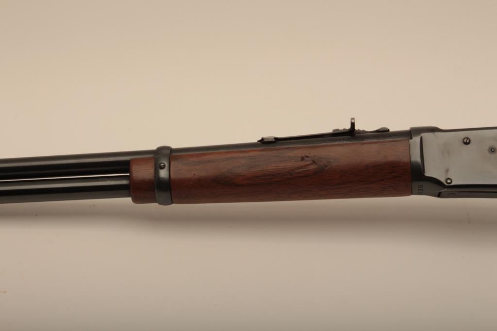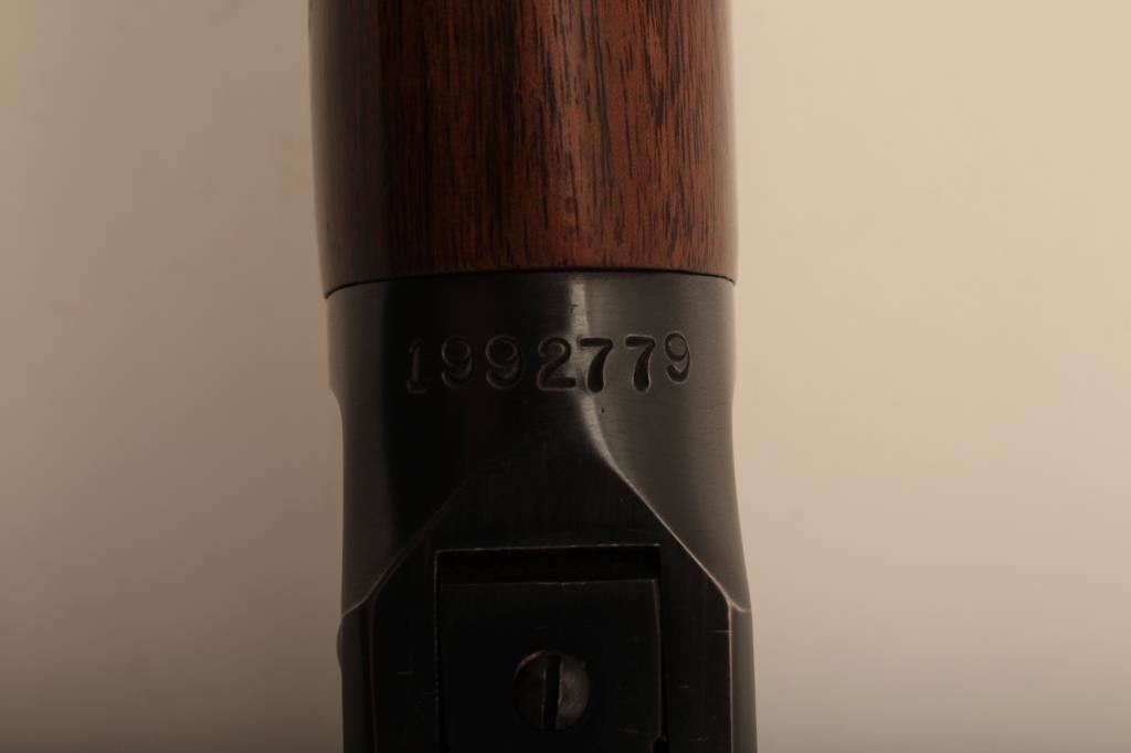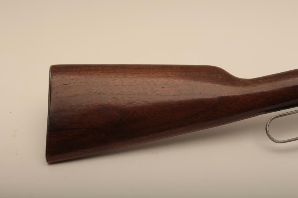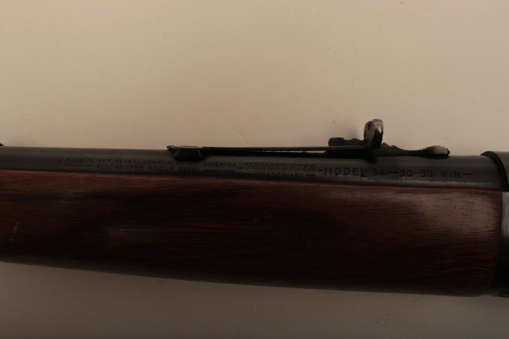 Winchester Model 94 lever action carbine (pre-64), .30-30 Win. caliber, 20” barrel, blued finish, wood stocks, S/N 1992779; overall very good to fine condition with majority of original finish remaining, near fine bore, crisp action, sharp markings and very good + wood showing some scattered mars and scratches from storage. (C&R/PPT). Est.: $300-$600.