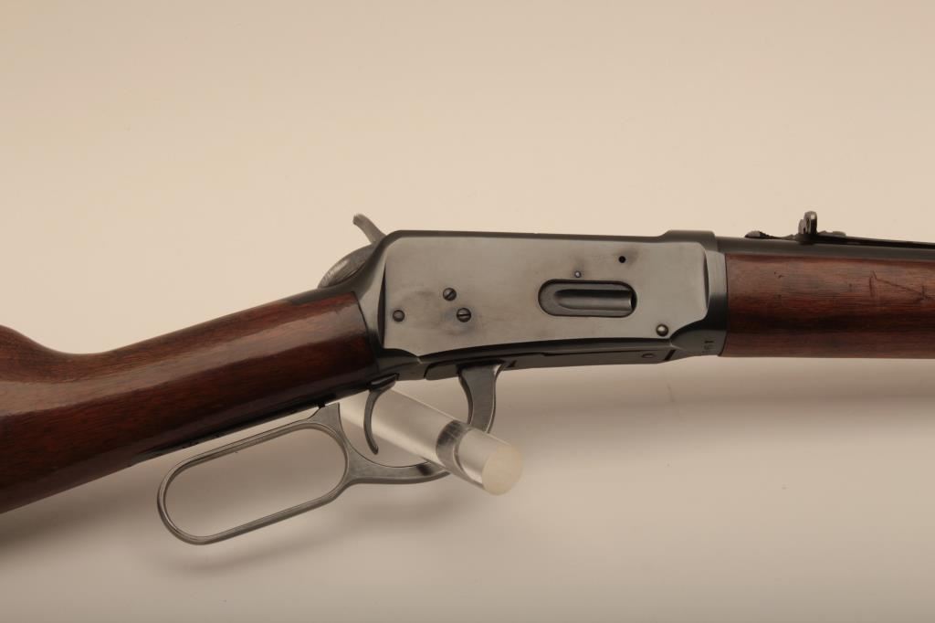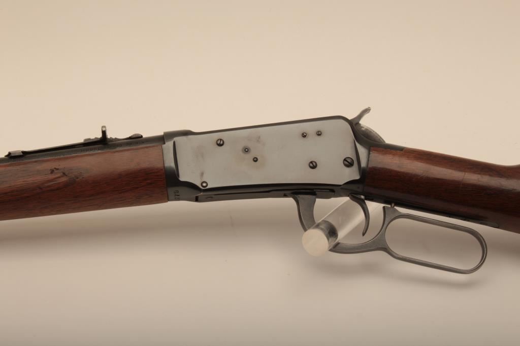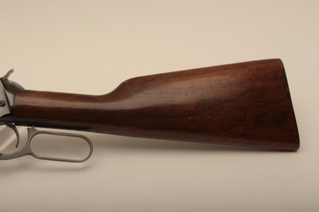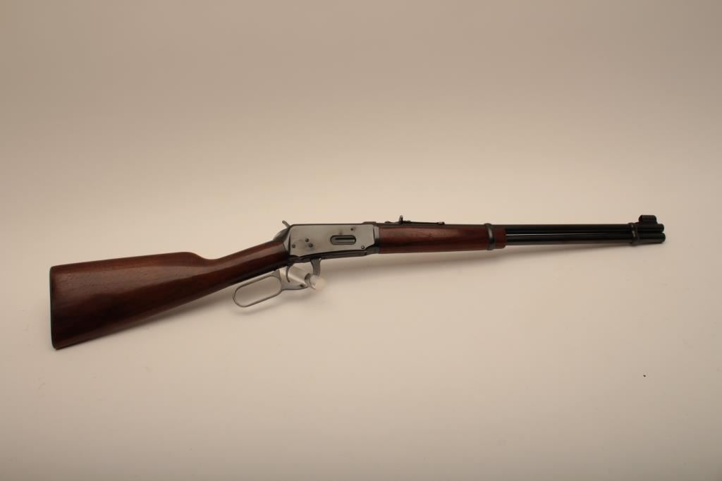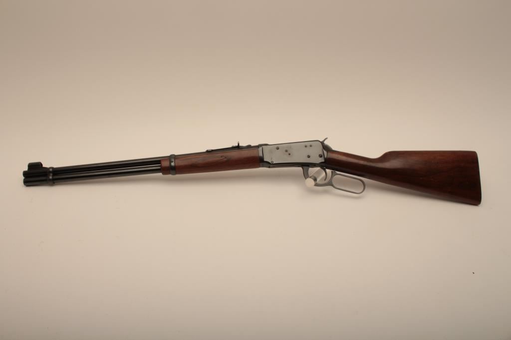 Winchester Model 94 lever action carbine (pre-64), .30-30 Win. caliber, 20” barrel, blued finish, wood stocks, S/N 1992779; overall very good to fine condition with majority of original finish remaining, near fine bore, crisp action, sharp markings and very good + wood showing some scattered mars and scratches from storage. (C&R/PPT). Est.: $300-$600.