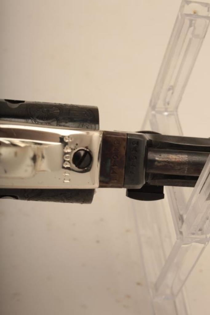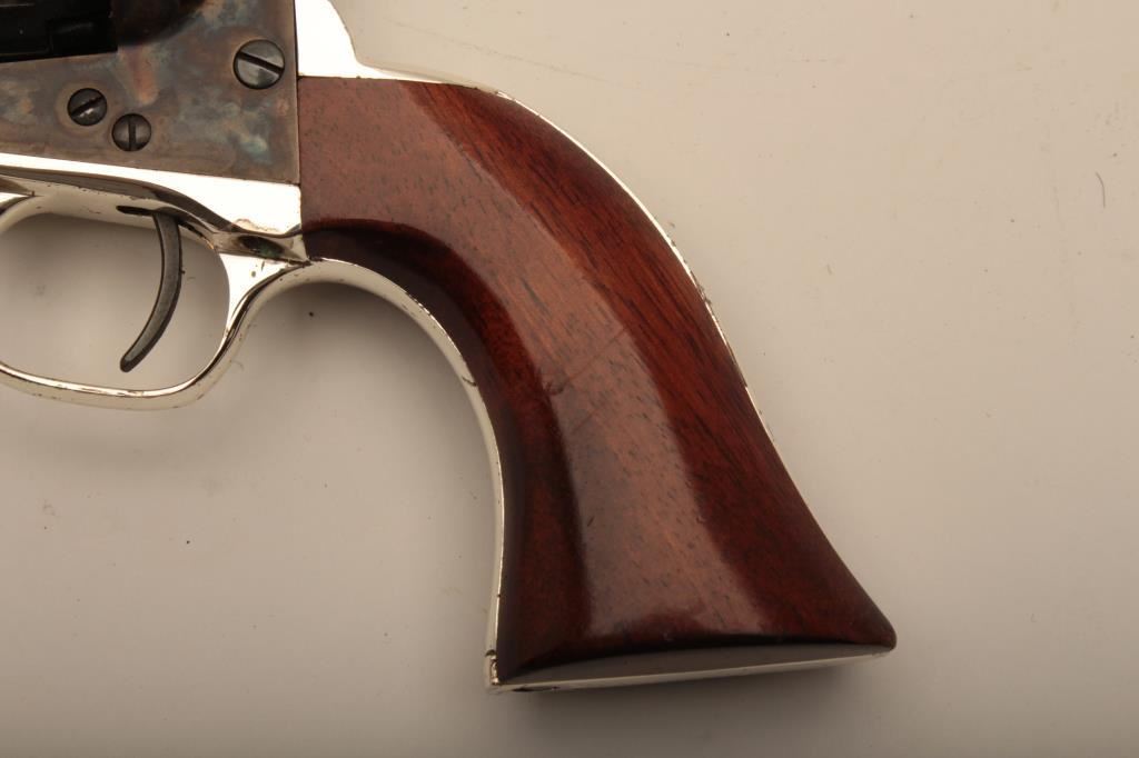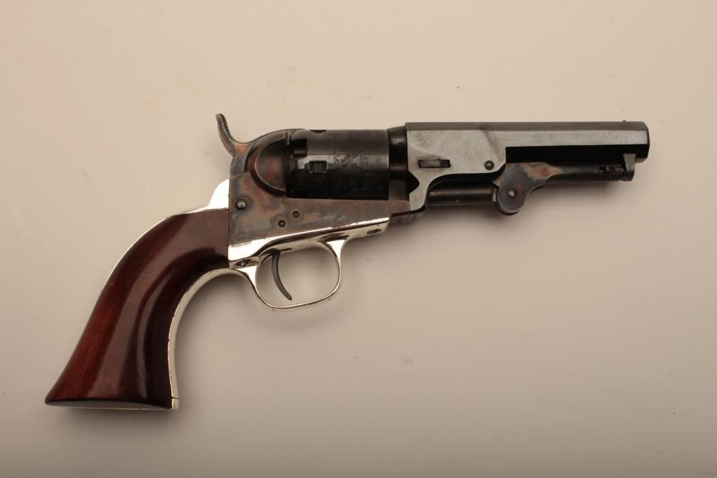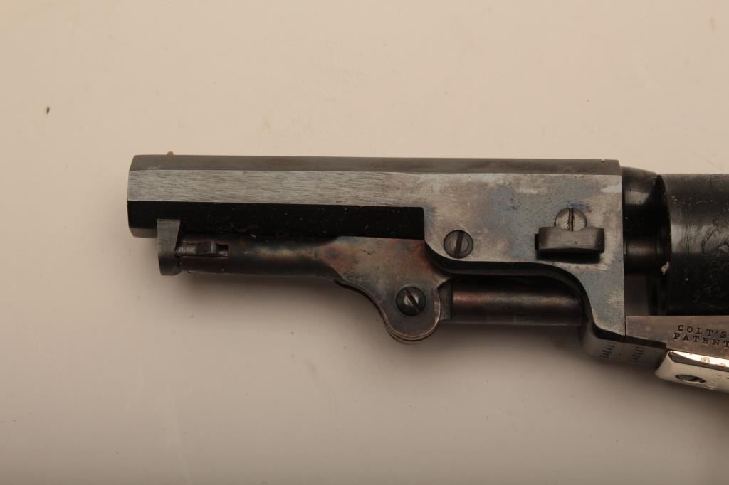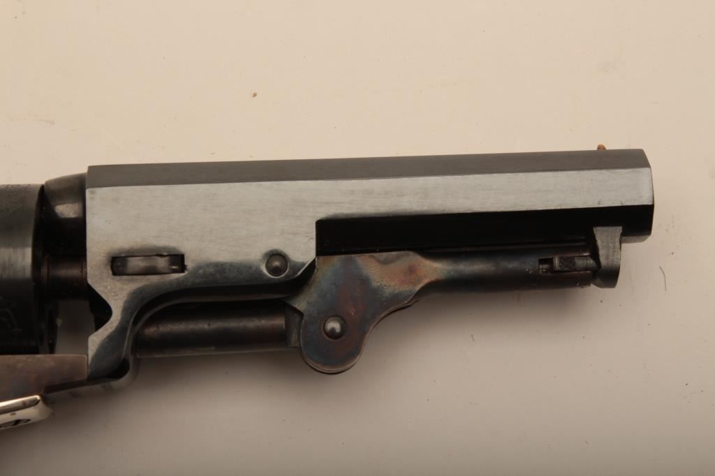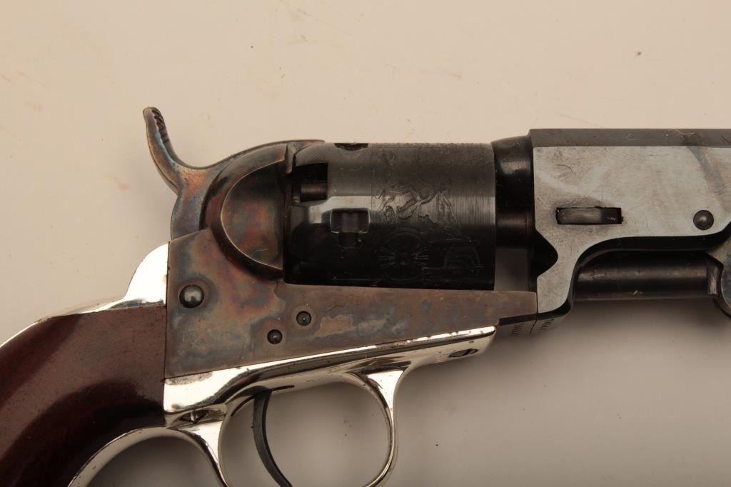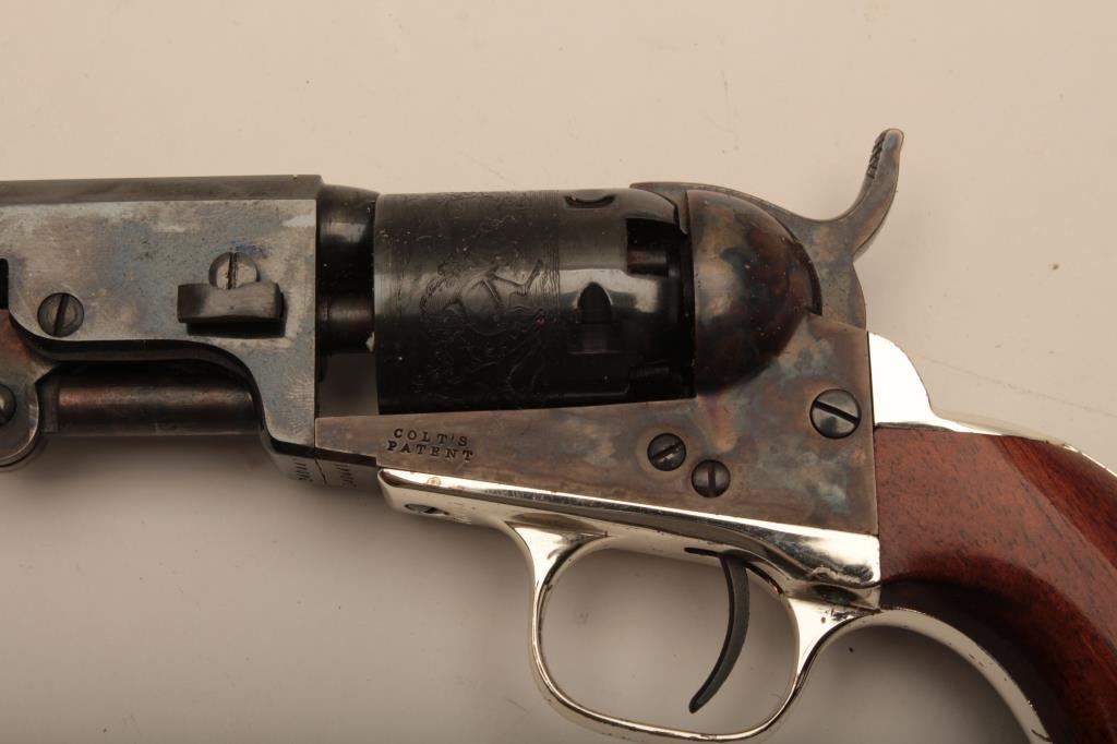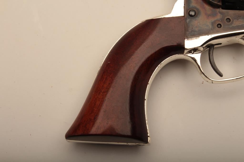 Colt New Blackpowder Series 1849 Pocket, #340441, 31 cal., 4" barrel, case hardened frame with blued barrel and nickel backstrap. Revolver is in very good condition overall, showing the majority of it's original finish, nickel is lifting in several areas, bore is very good, action is good, grips are very good. (Exempt) Est. $250-500