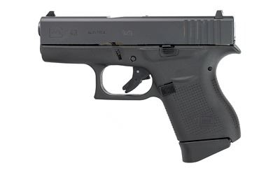 Glock, 43, Striker Fired, Sub Compact, 9MM, 3.41" Barrel, Polymer Frame, Matte Finish, Fixed Sights, 6Rd, 2 Magazines