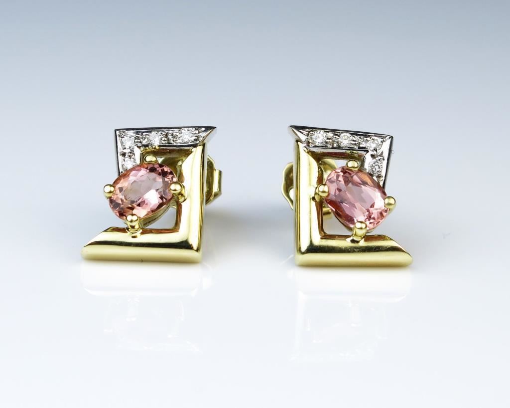 Lot 1561 18CAI-74 PINK TOURMALINE DIAMOND EARRINGS