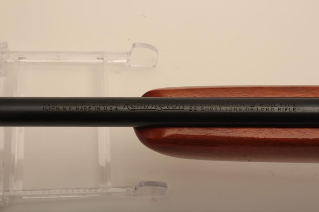 Remington 511X .22 caliber bolt action rifle (V.L. 36 stamped on barrel). In fine to excellent condition with factory papers. 97%-99% overall with 1 mag. The wood is still original light color. (Modern) Est.: $150-$300