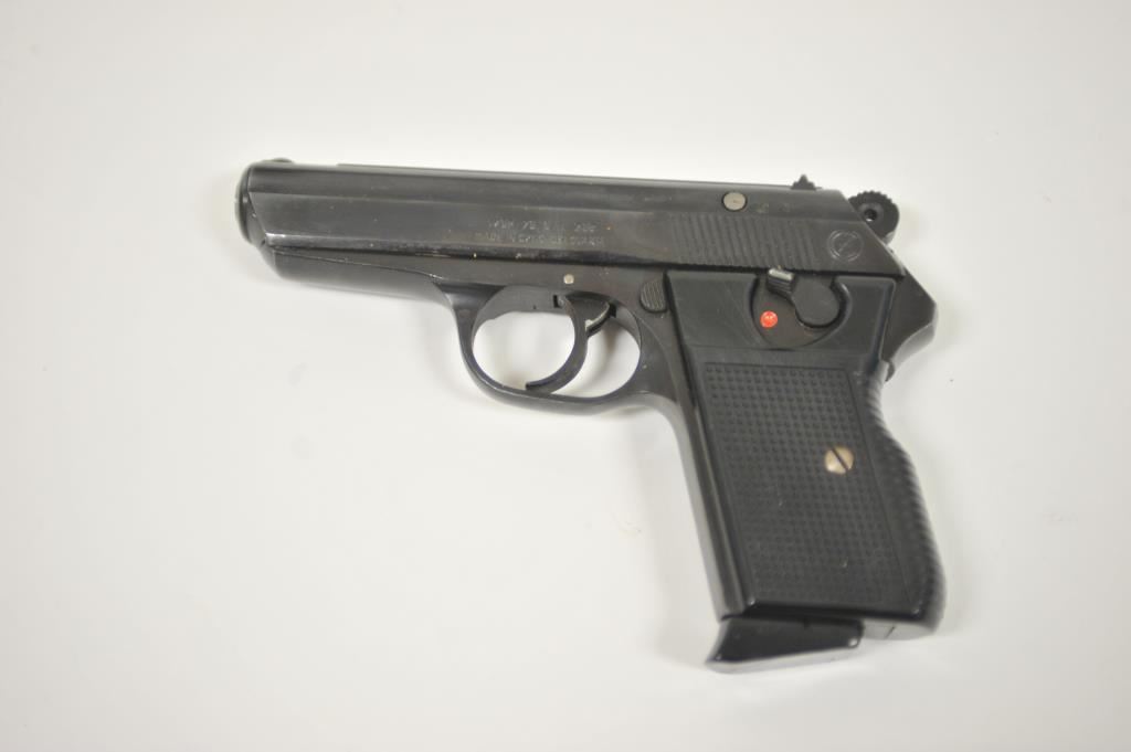 CZ Model 70 semi-automatic pistol, 7.65mm caliber, 3.5” barrel, blued finish, checkered plastic grips, S/N 153337; overall fine condition with a fine bore, crisp action, sharp markings and fine grips; majority original finish remains; accompanied by a brown leather flap holster with one extra magazine. (Modern/PPT). Est.: $250-$500.