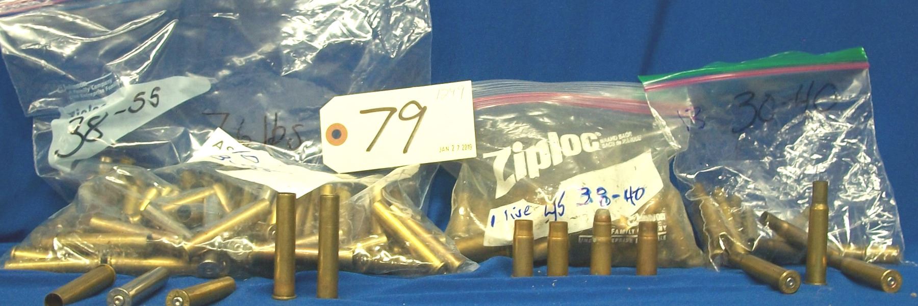 45 pcs. of used 38 - 40 brass including one live rnd, 110 pcs of used 38 - 55 win., 13 pcs of used 30 - 40 brass