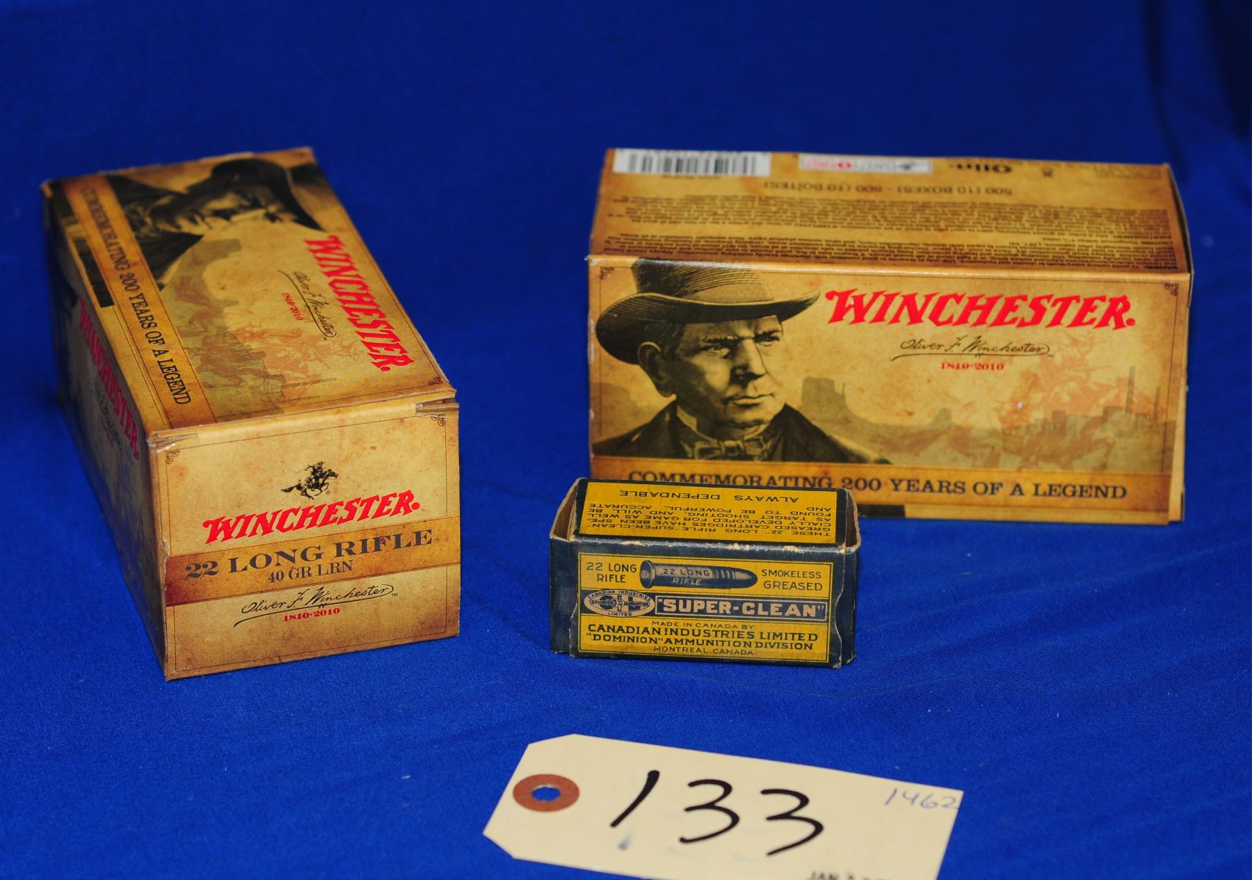 two bricks of 500 rnds of Winchester 22 lr 200 year commemorative ammo, total of 20 fifty rnd boxes, 10 rnds of vintage Dominion ammo in box