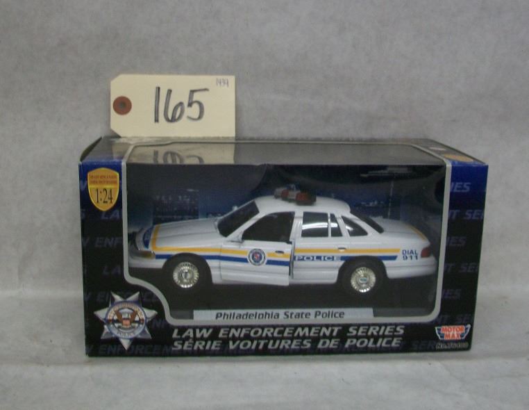 Motor Max Law Enforcement Series Die Cast Philadelphia State Police Ford Crown Victoria (76400) 1:24 scale In original box Opening hood with engine compartment details, authentic badges and decorations, interior police conversions (laptop, shot gun, CB radio)