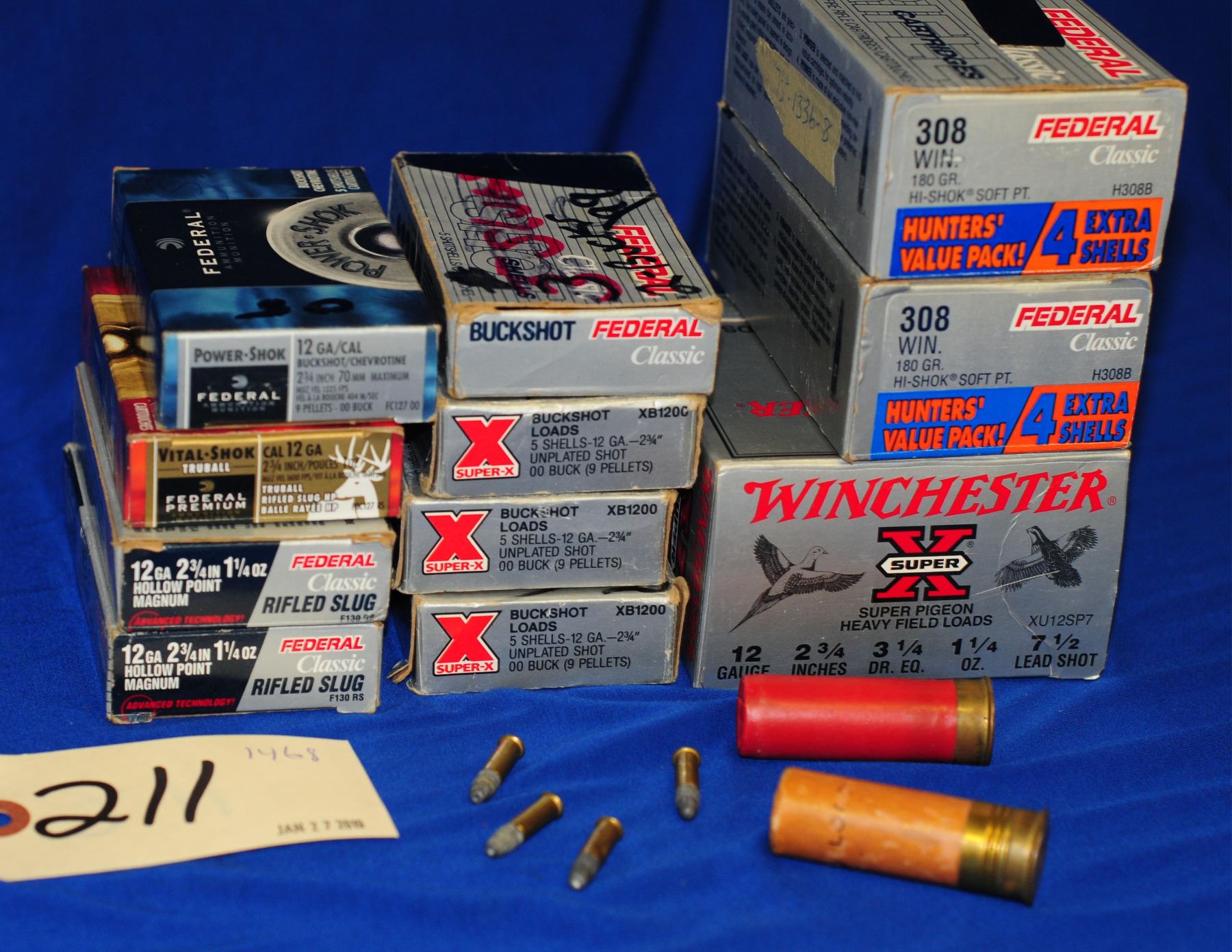 37 Rnds Federal 308 Win 180 grn SP, 25 Rnds Winchester 12Ga x 2 3/4" No 71/2, 15 Rnds Winchester 12Ga x 2 3/4" 00BK, 7 Rnds Federal 12Ga x 2 3/4" 00BK, 15 Rnds Federal rifled slugs, 2 rnds 12Ga x 2 3/4" and 4 rnds 22LR.