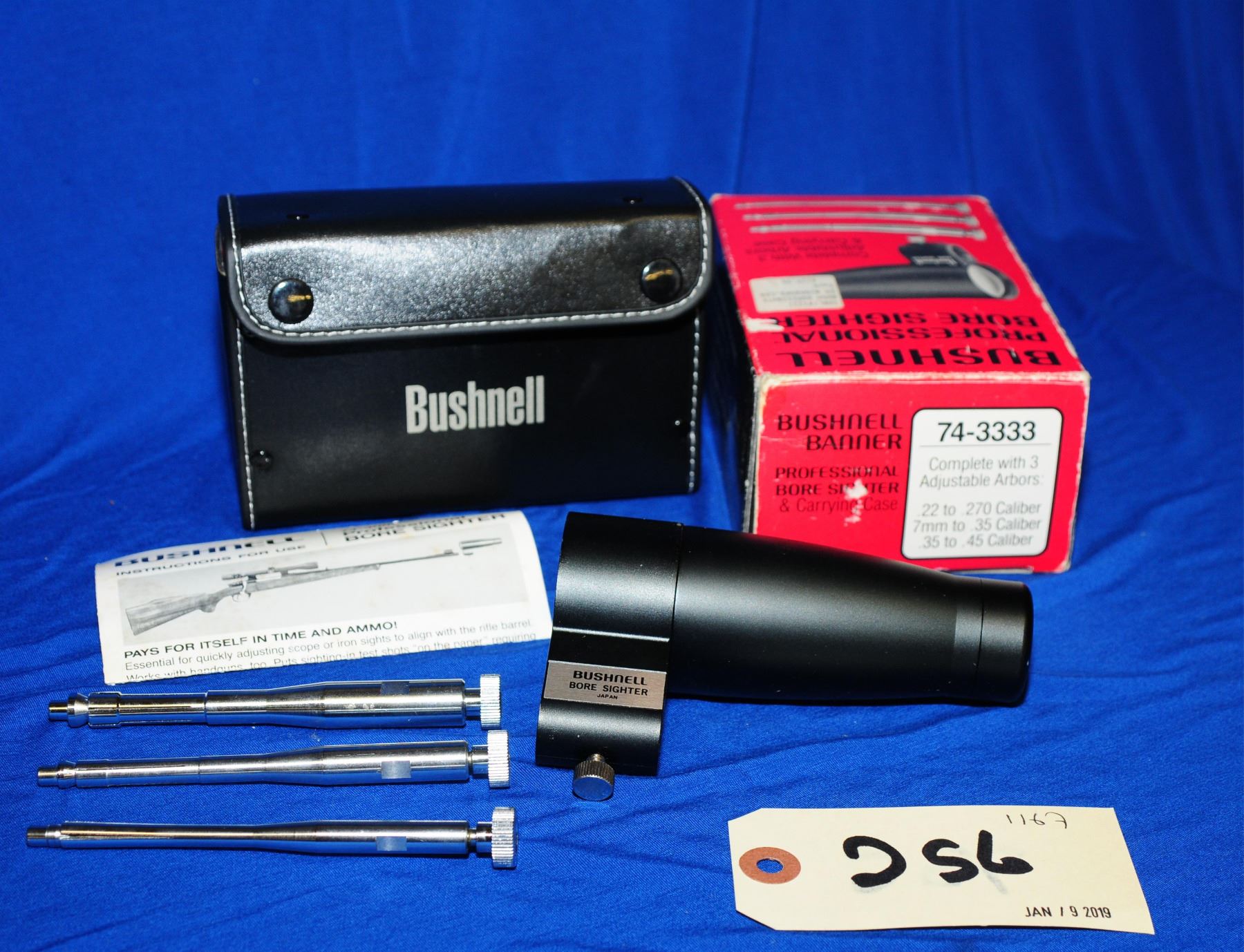 1) Bushnell Professional Bore Sighter, part number 74-3333. 2) Porta Aim, extends to 12 inch height.