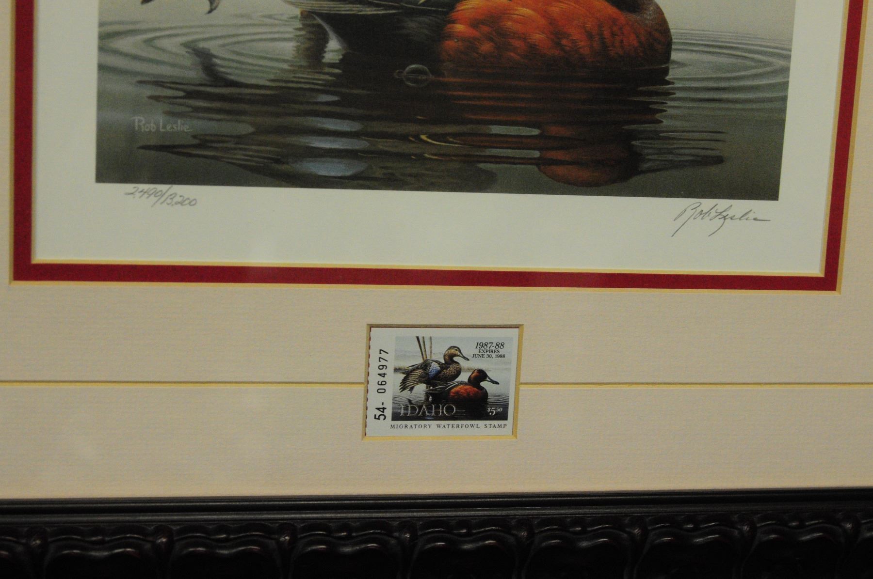 Robert Leisle Print , 1987-1989 Idaho Waterfowl Stamp, print 2490 of 13200. 18x20 inchs.
