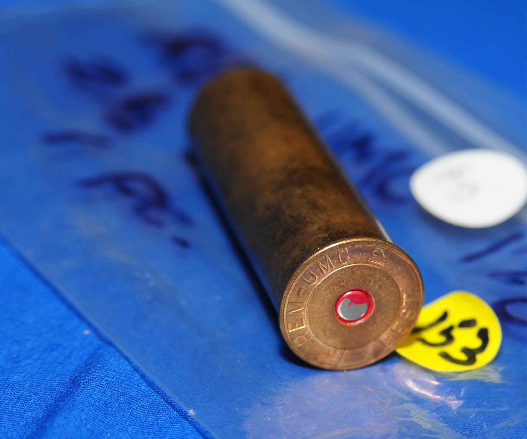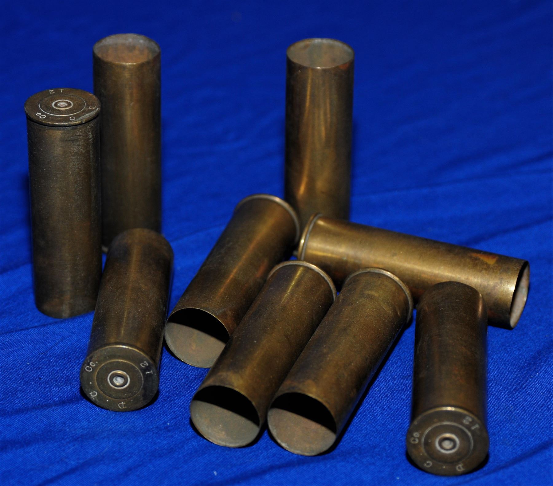 9 pcs. D.C. Co. 12 ga. x 2 9/16" used brass and 1 pc. new Rem-UMC 12 ga. x 2 1/2" brass