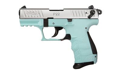 Walther, P22QD, Semi-automatic, Double Action/Single Action, Compact, 22LR, 3.4" Threaded Barrel, Polymer Frame, Angel Blue Grips, 10Rd, 1 Magazine, Adjustable Sights