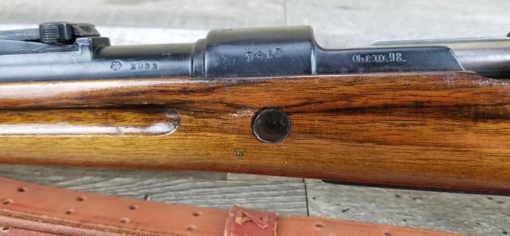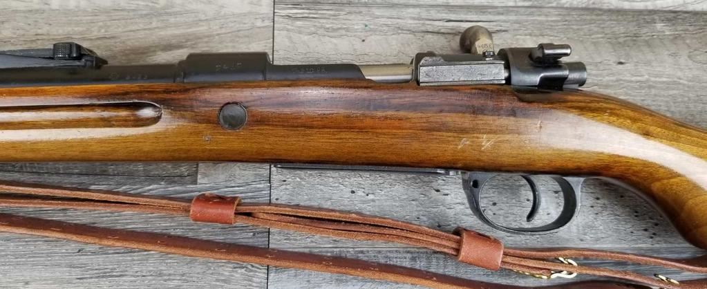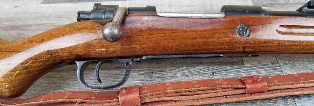 SPORTERIZED IN ORIGINAL STOCK. DATED "1920". NO NUMBERS APPEAR TO MATCH.
