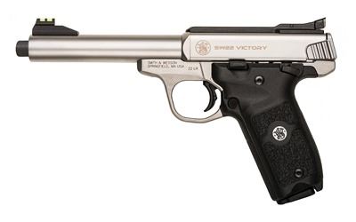 Smith & Wesson, Victory, Semi-Automatic, 22LR, 5.5" Threaded Barrel, Steel Frame, Stainless Finish, Polymer Grip, Adjustable Rear, Fiber Optic Front Sight, 10 Rounds, 2 Magazines