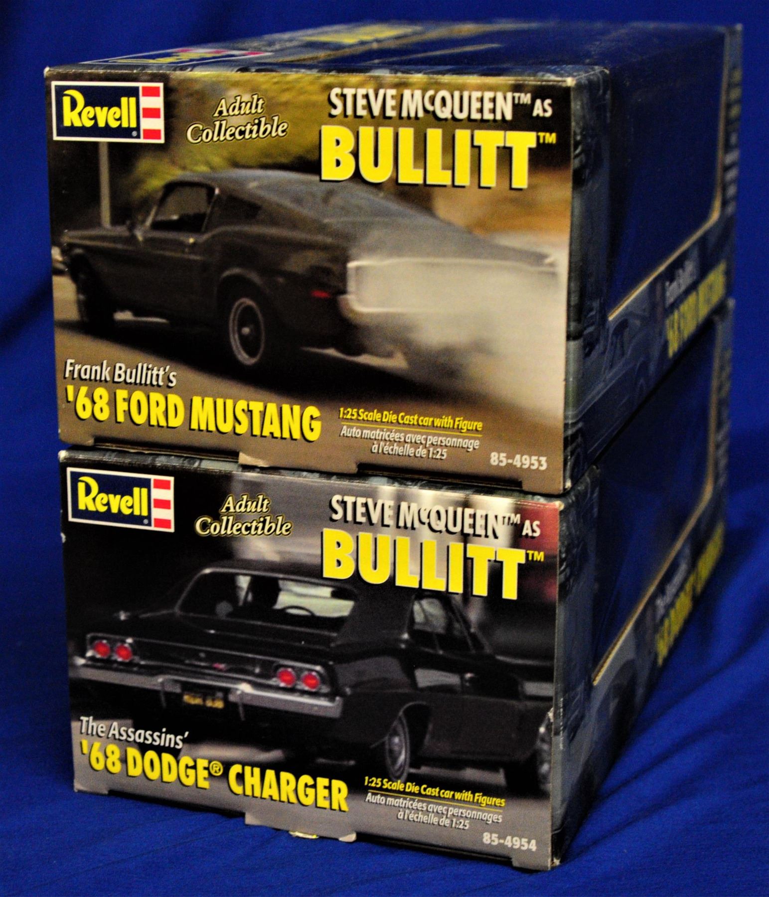 1) Revell 68 Ford Mustang with figurine 2) Revell 68 dodge Charger with fifurines seated in car both in original packages and in excellent condition