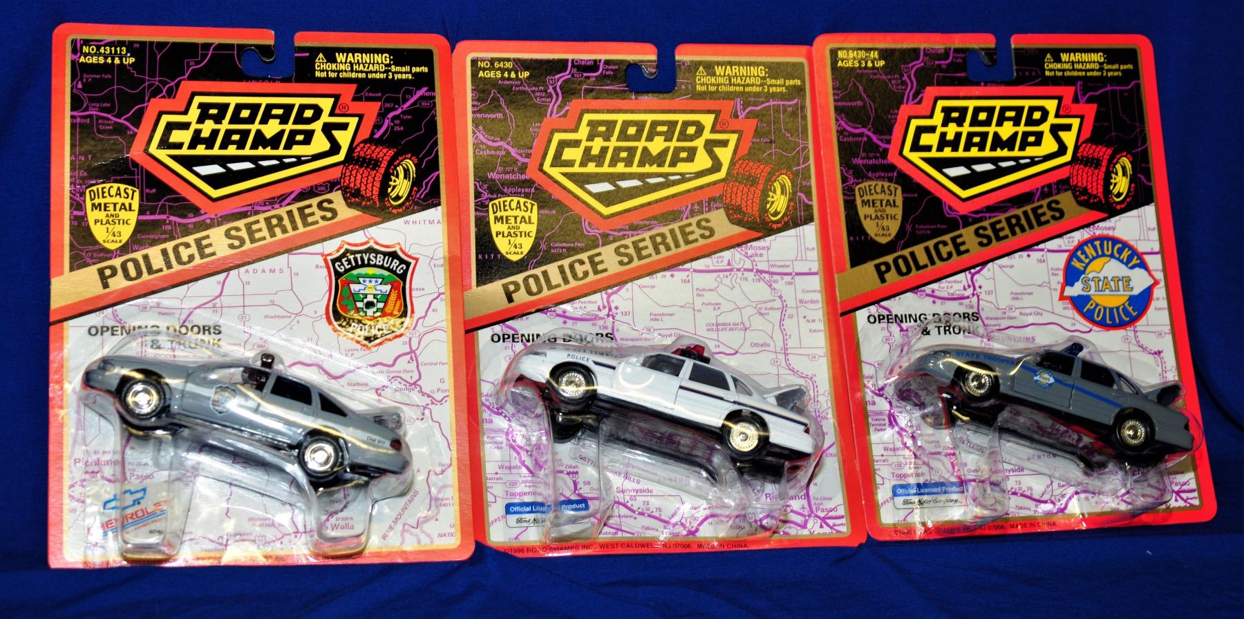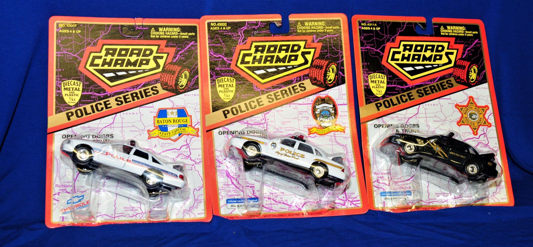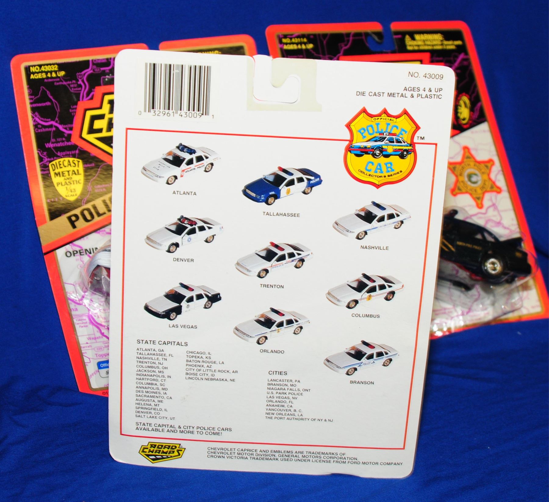 1:43 scale die cast Police cars 1) Crown Vic Saint Paul PD 2) Crown Vic North Pole PD 3) Crown Vic Gettysburg PD 4) Crown Vic Baton Rouge PD 5) Crown Vic Kentucky State Pd 6) Crown Vic Park Police