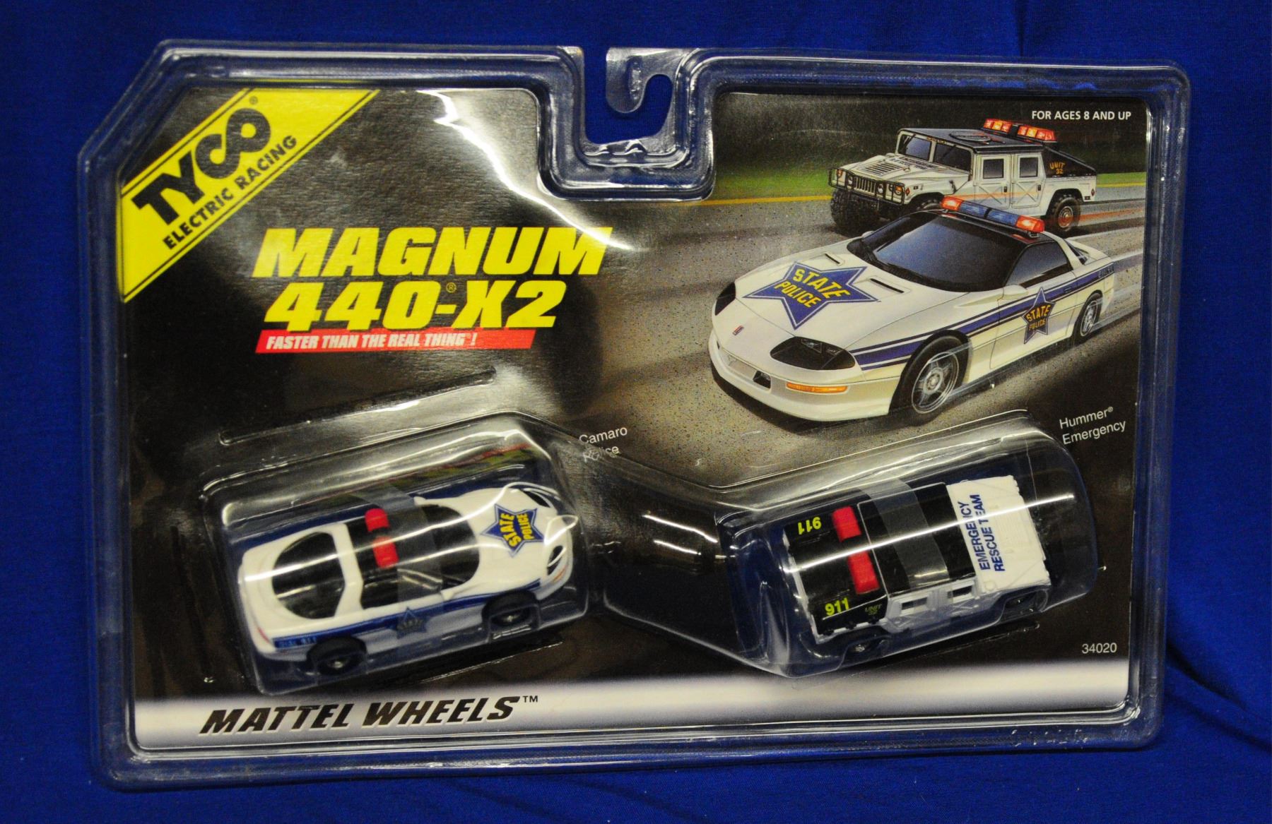 1:64 scale Magnum 440-X2 Camaro Police & Hummer Emergency slot cars, new in package