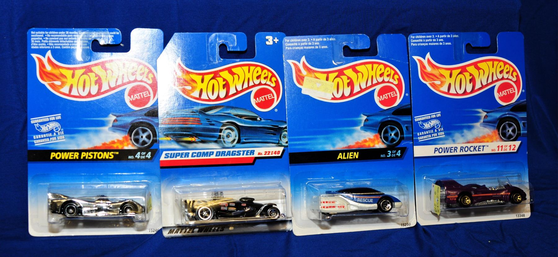 1:64 scale, 1) Power Rocket 2) Alien 3) Super Comp Dragster 4) Chevy Stocker 5) Tail Dragger 6) Express Lane 7) Power Pistons 8) Shadow Jet 9) Pearl Passion 10) Shadow Jet all as new in original packages