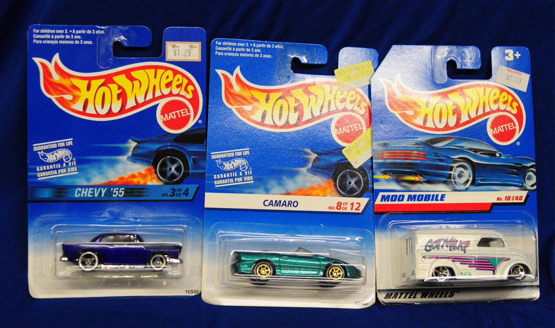 1:64 scale 1) Shelby Cobra 427 S/C 2) Moo Mobile 3) Vector Avtech WX-3 4) Mustang Mach 1 5) camaro 6) 80"s Camaro Z-28 7) T-Bird 63 8) Camaro Z-28 9) Mustang Mach 1 10) Chevy 55 all as new in original packages