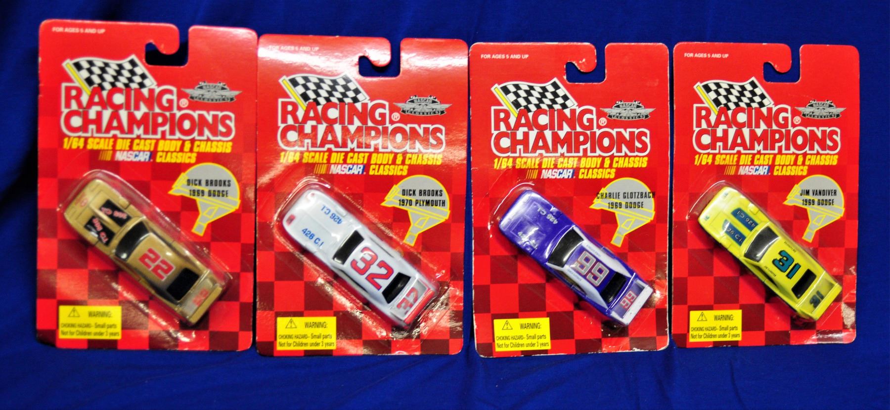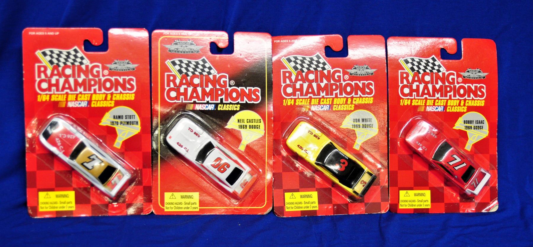 1:64th scale Die Cast Body and Chassis. 1) Bobby Isaac 1969 Dodge. 2) Neil Castles 1969 Dodge. 3) Don White 1969 Dodge. 4) Ramo Stott 1979 Plymouth. 5) Dick Brooks 1970 Plymouth. 6) Dick Brooks 1969 Dodge. 7) Jim Vandiver 1969 Dodge. 8) Charlie Glotzbach 1969 Dodge.