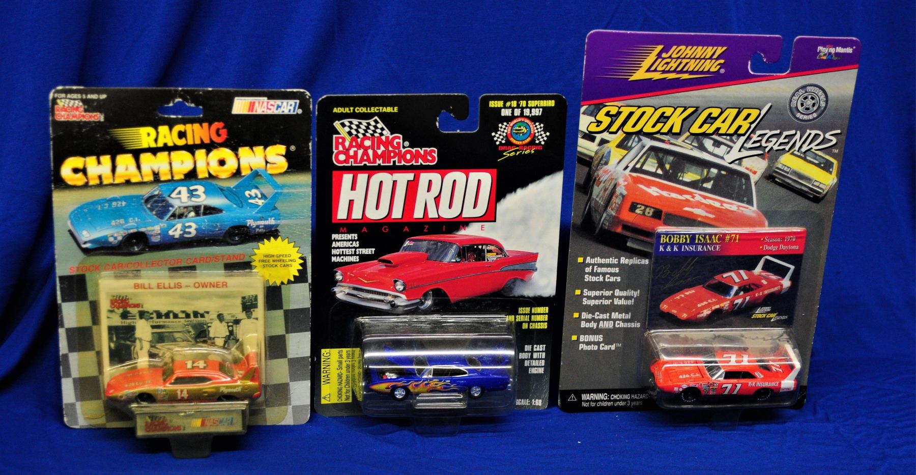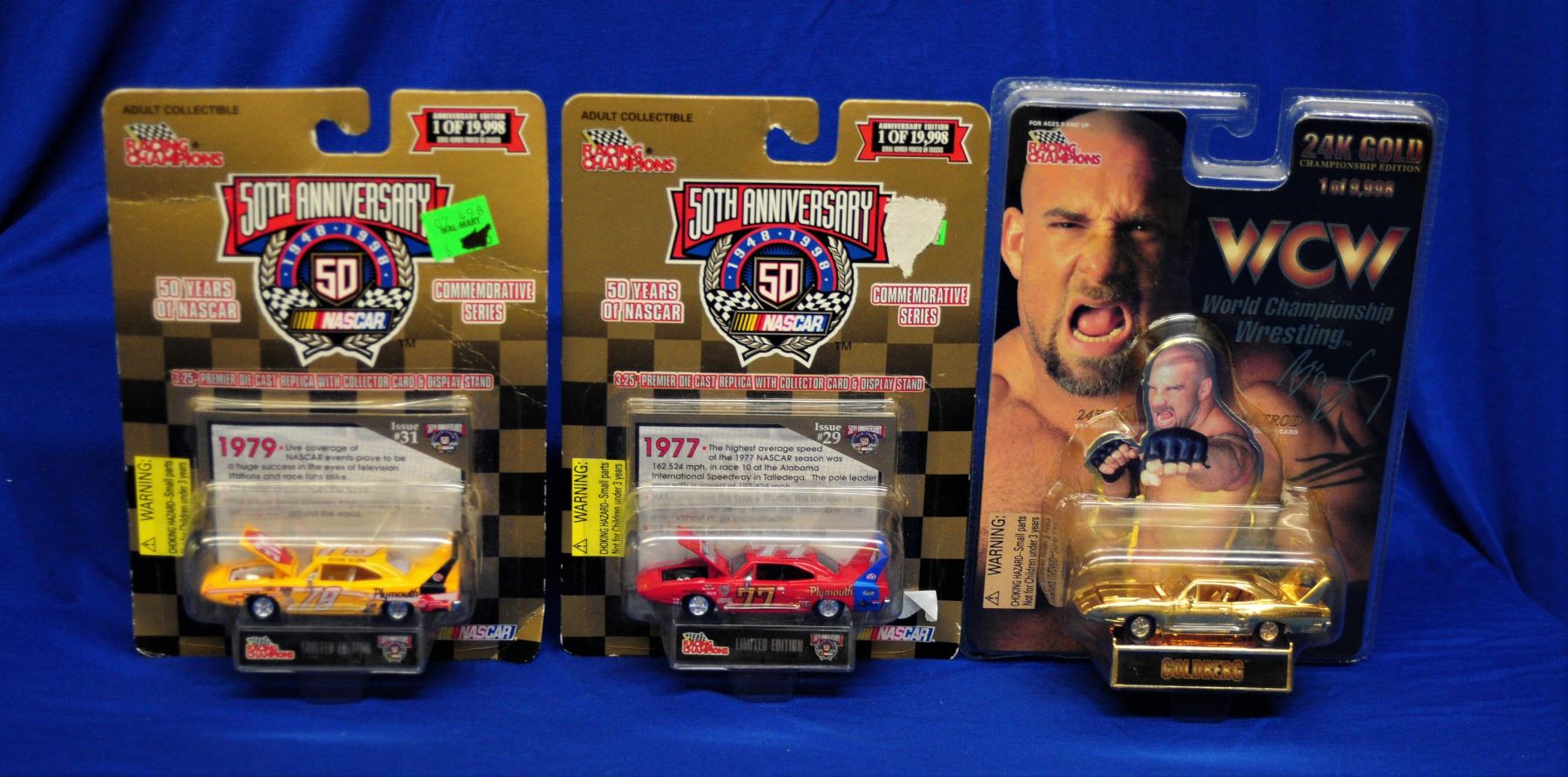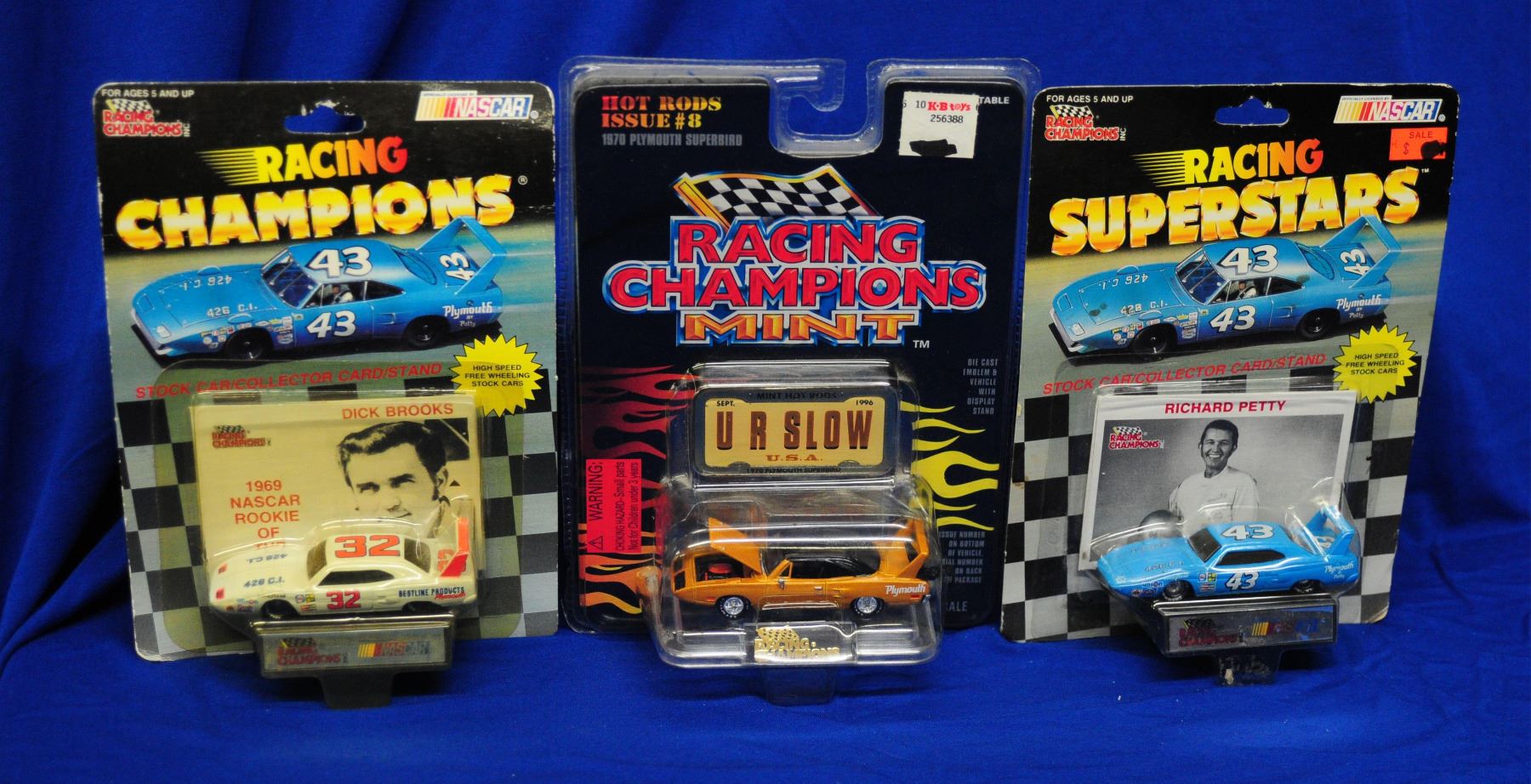 All are either 3 1/4" long, 1:68 or 1:64 scale 1) 24K gold plated GoldbergNitro Street Rod 2) 1970 Plymouth Superbird 3) 50th Anniversary Plymouth #79 4) Bill Ellis #14 Plymouth 5) Plymouth drag car 6) 50th Anniversary Plymouth #77 7) Richard Petty #43 Plymouth 8) Dick Brooks 1969 NAASCAR Rookie of the Year #32 Plymouth 9) Johnny Lightning Bobby Issac #71 Dodge Daytona