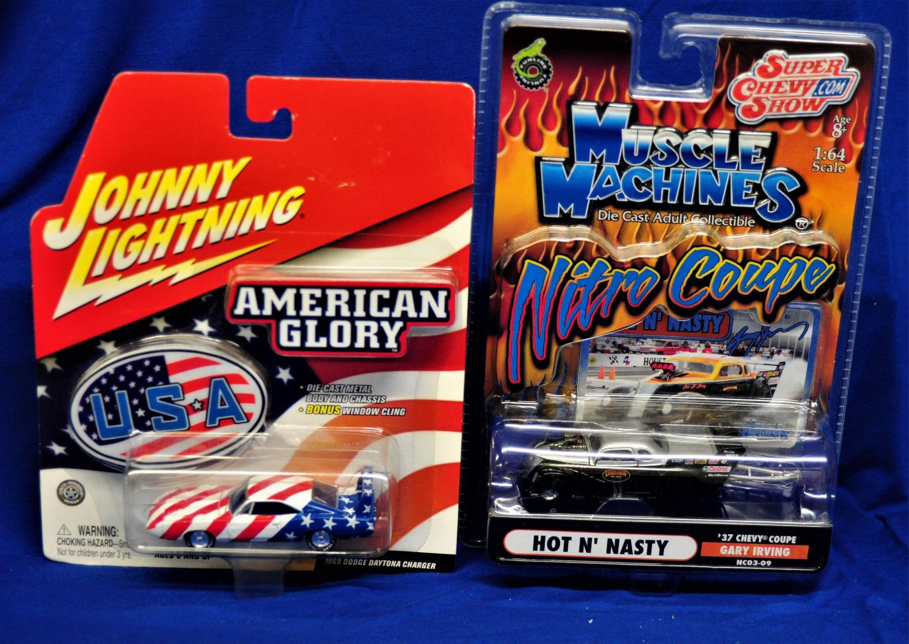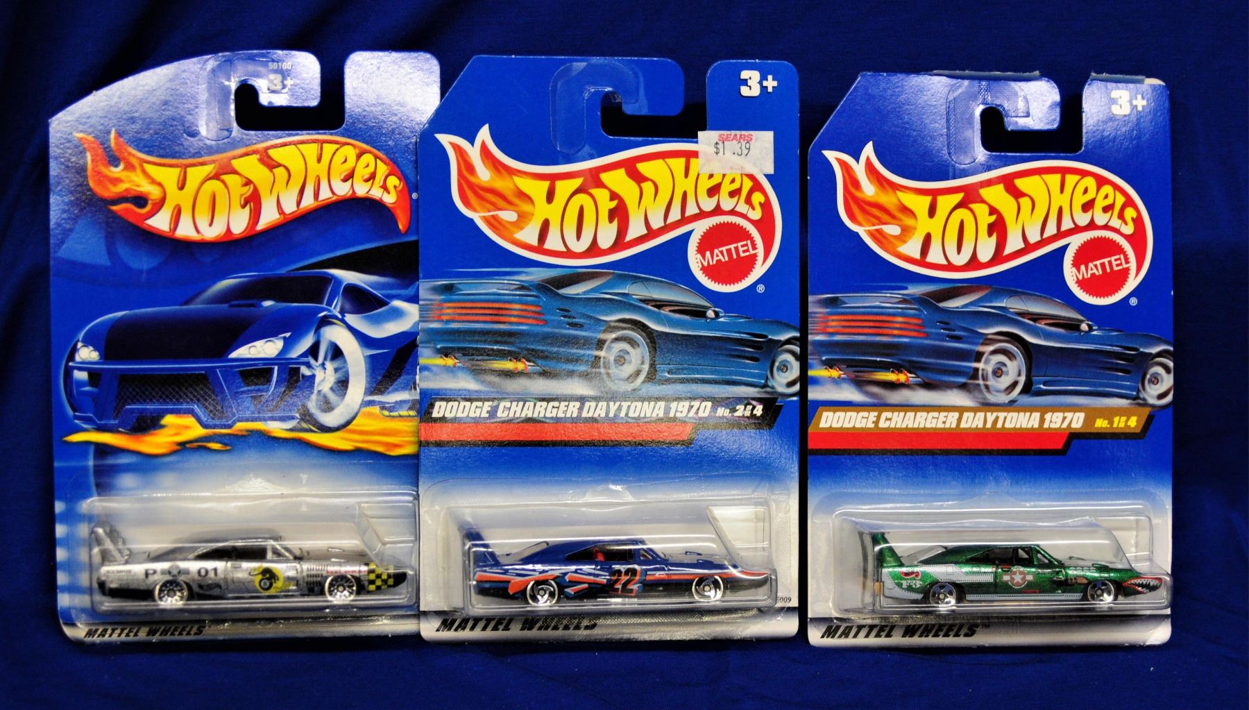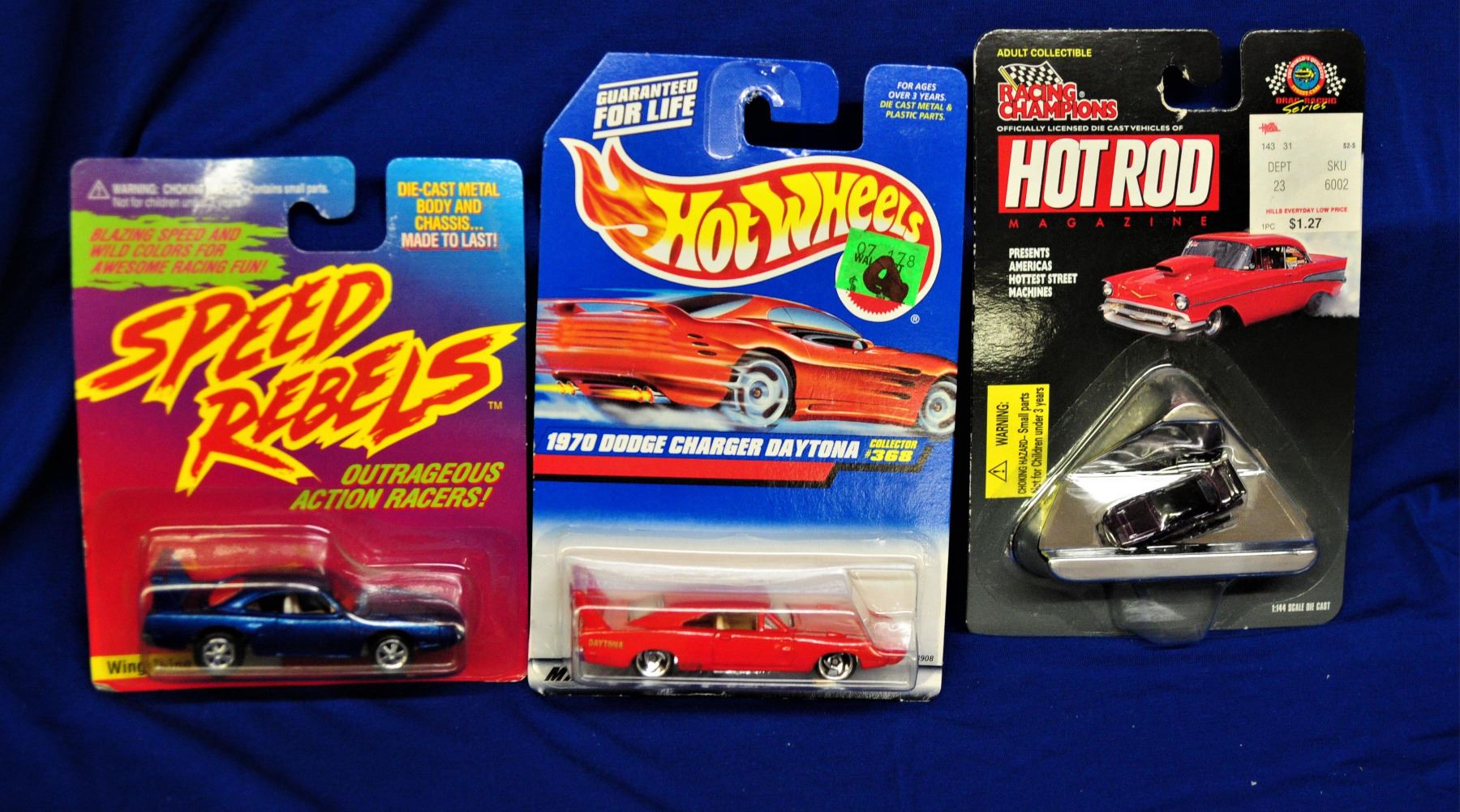 1:64 scale die cast 1) Hot Wheels1937 Chevy 2) Hot Wheels 1970 Dodge Charger Daytona 3) Speed Rebles Wing Thing 4) Racing Champions 1:144 scale Plymouth 5) Muscle Machines Gary Irving 37 Chevy Coupe 6) Johnny Lightning 1969 Dodge Daytona Charger 7) Hot Wheels 1970 Dodge Charger Daytona 8) Hot Wheels 1970 Dodge Charger Daytona 9) Hot Wheels Daytona Charger