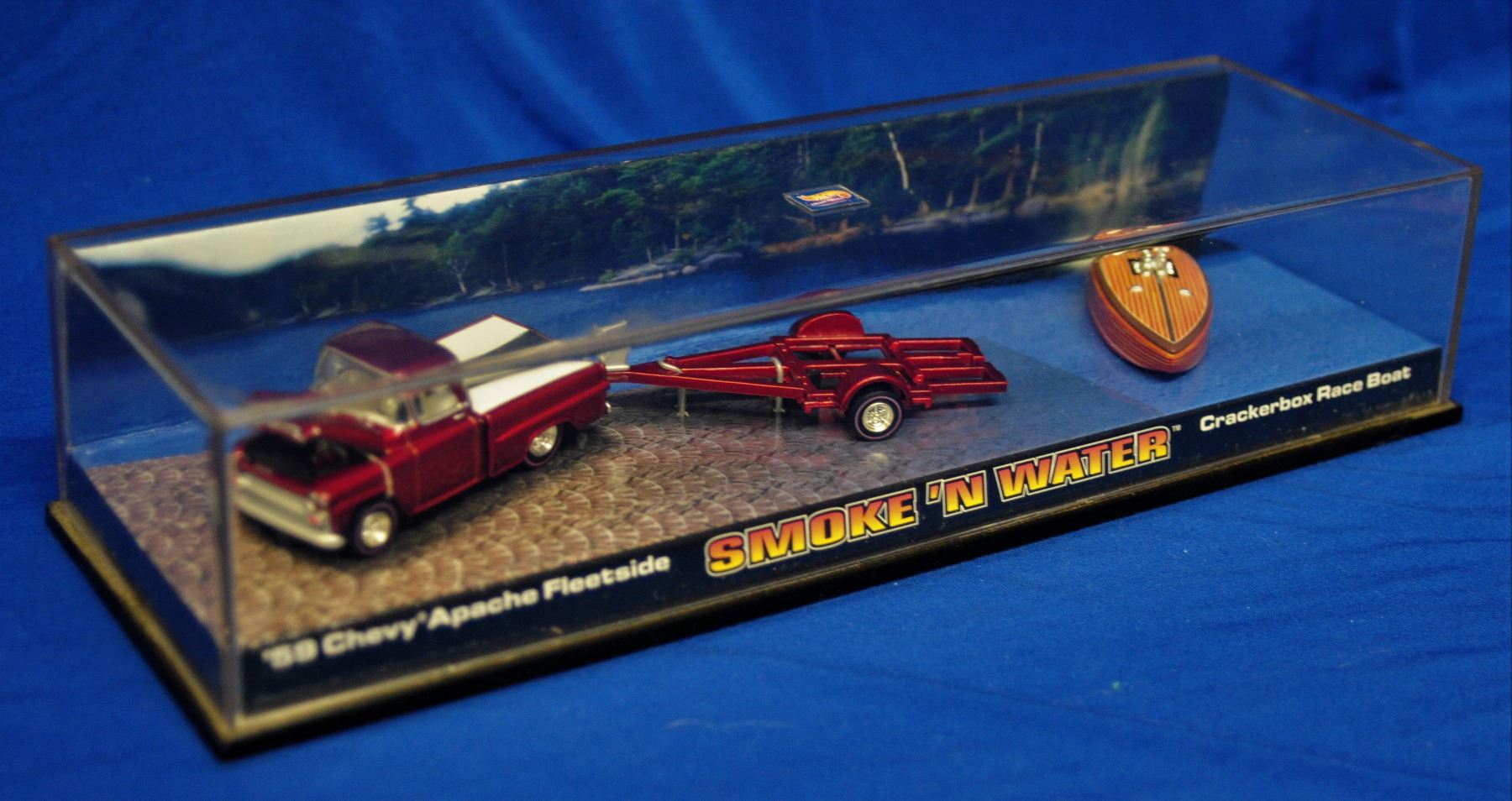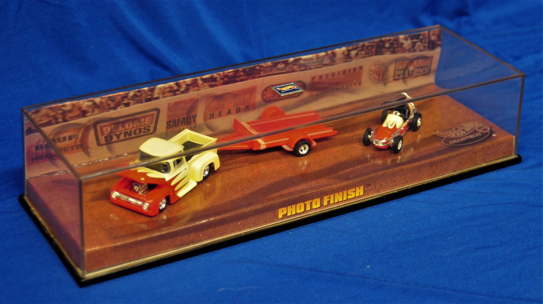 two sets in display cases and as new condition. 1) 56 Ford Pickup with a trailer and a 60's sprint car 2) 59 Ford Apache Fleetside with trailer and a Crackerbox race boat