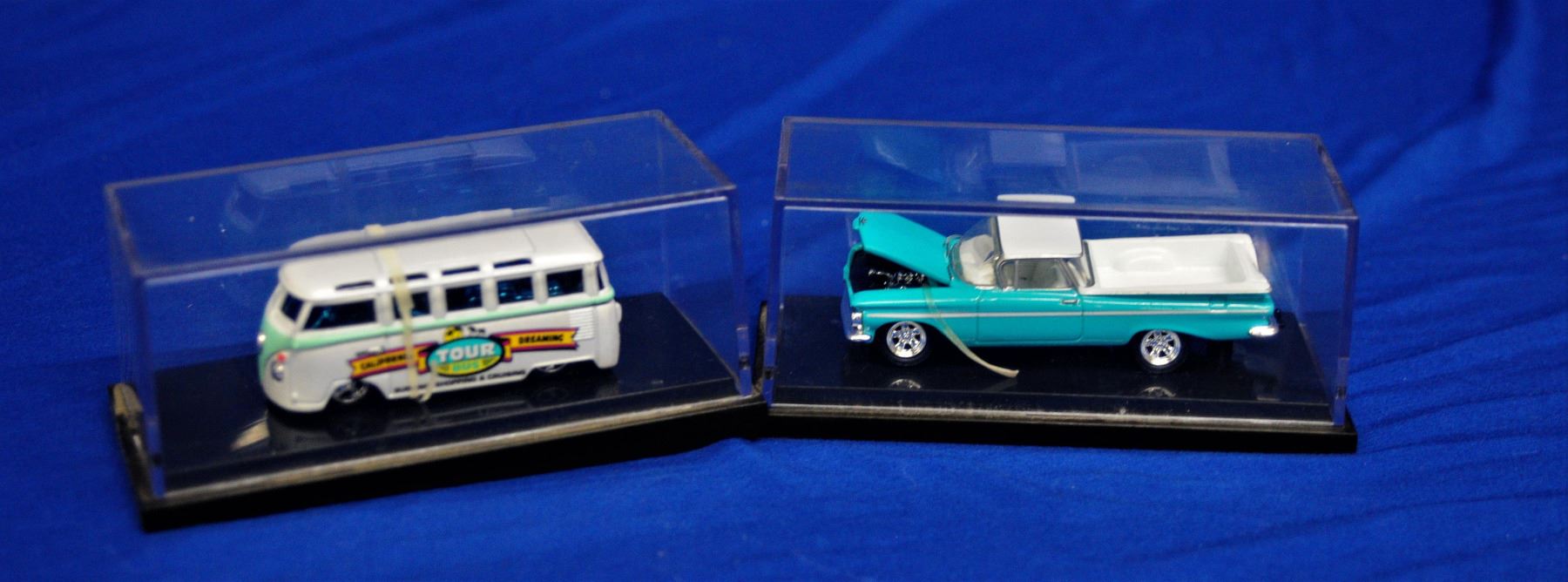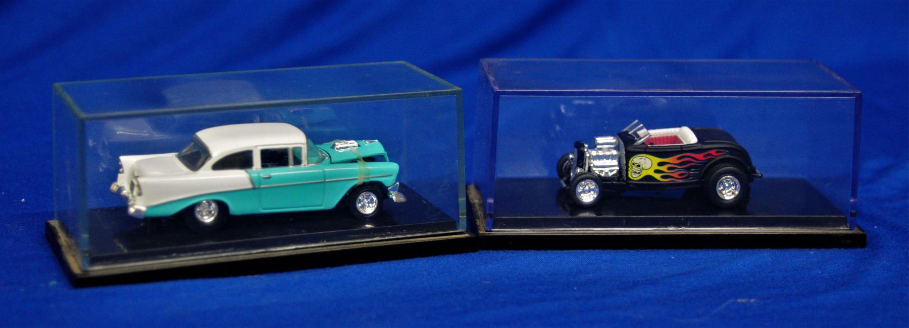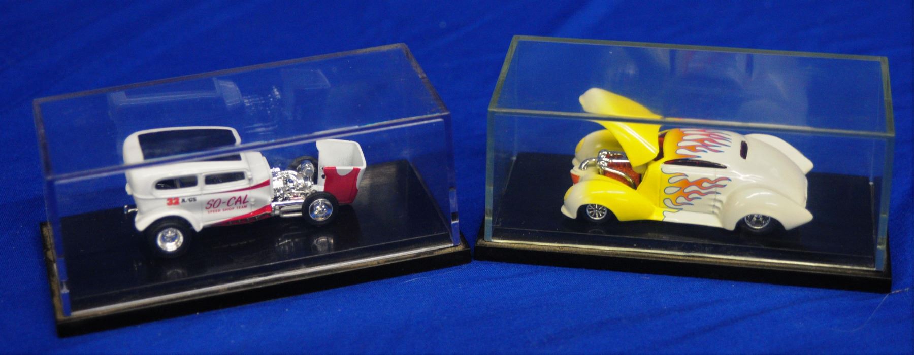 Lot of six different cars all with their own display case, all cars are as new