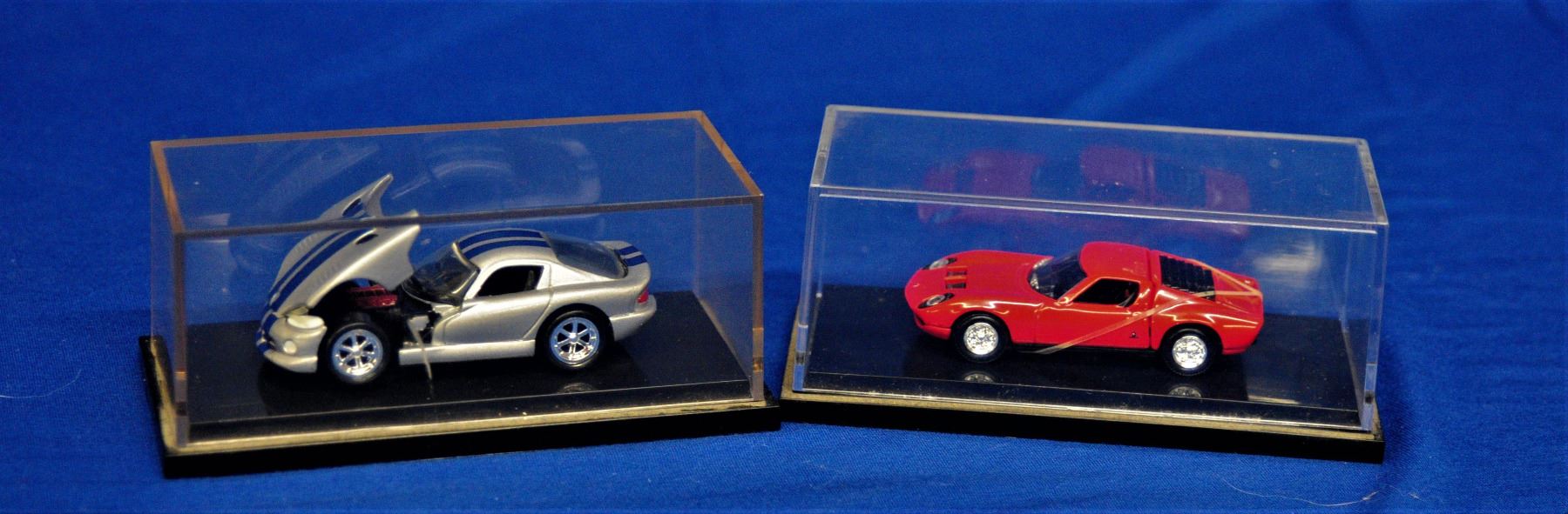 5 different cars including sports cars, the Bone Shaker and more all in their own display case and are as new