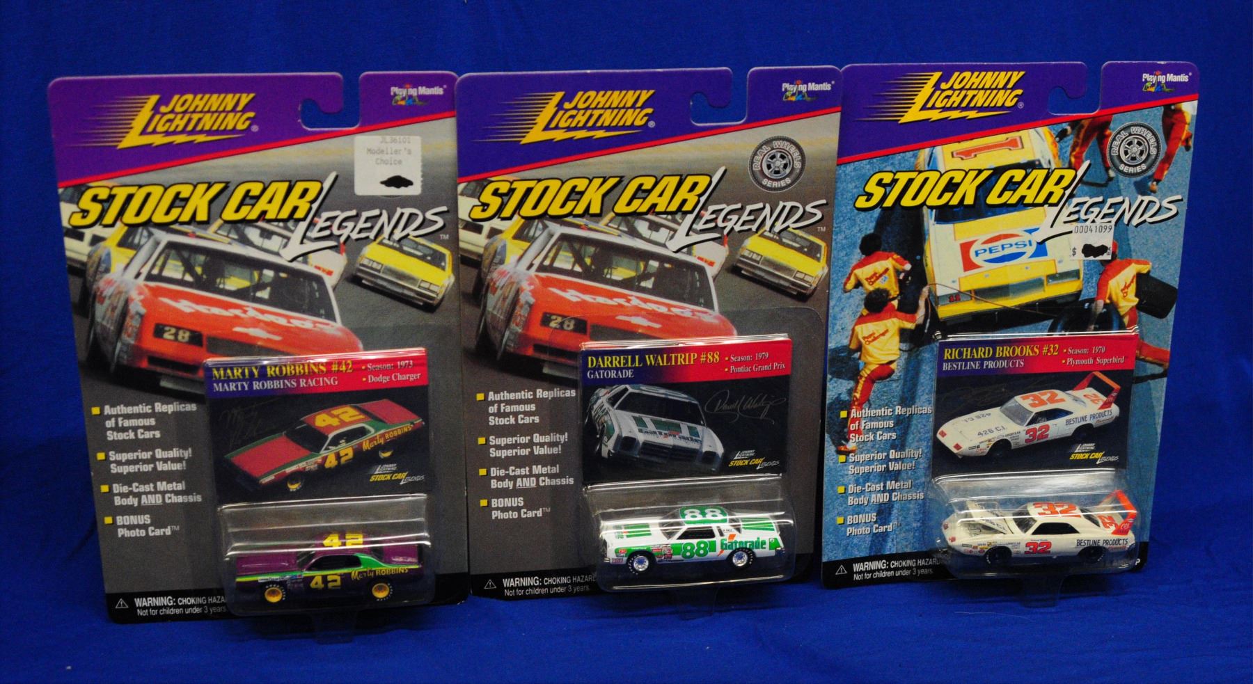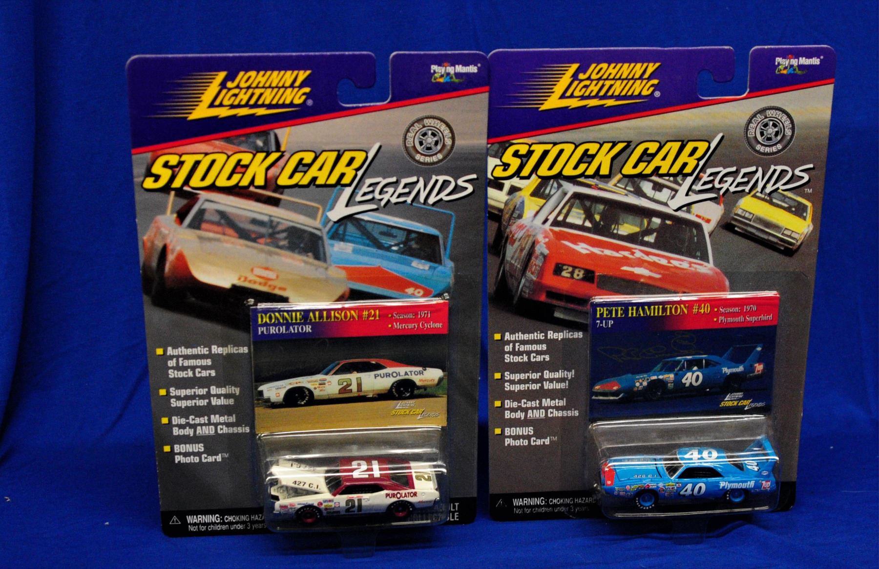 1:64 scale die cast authentic replicas with bonus photo card in unopened original packages 1) Marty Robbins #42 Dodge Charger season 1973 2) Cale Yarborough #28 Monte Carlo season 1984 3) David Pearson #17 Ford Talladega season 1969 4) Darrell Waltrip #11 Monte Carlo season 1983 5) Pete Hamilton #40 Plymouth Superbird season 1970 6) Donnie Allison #21 Mercury Cyclone season 1971