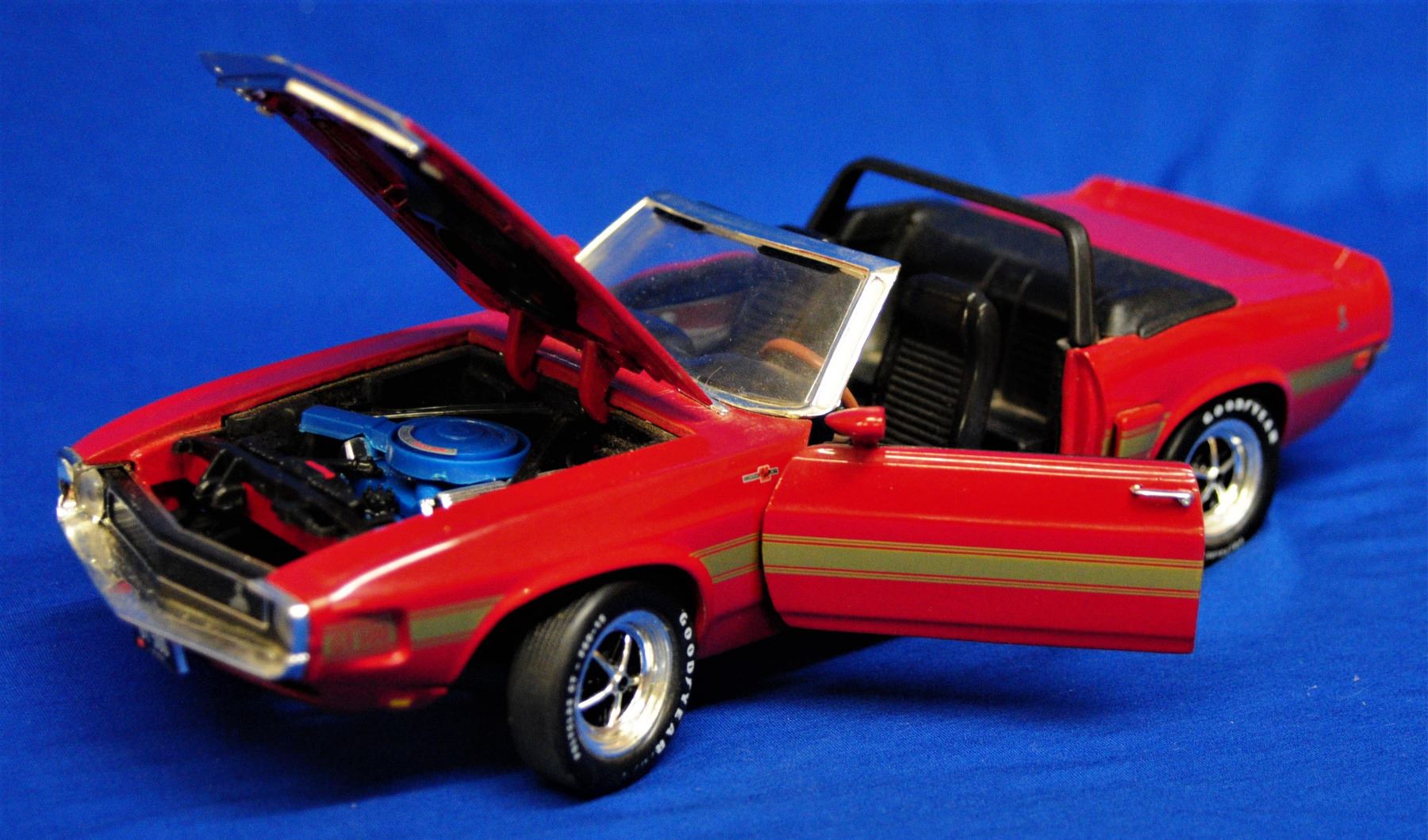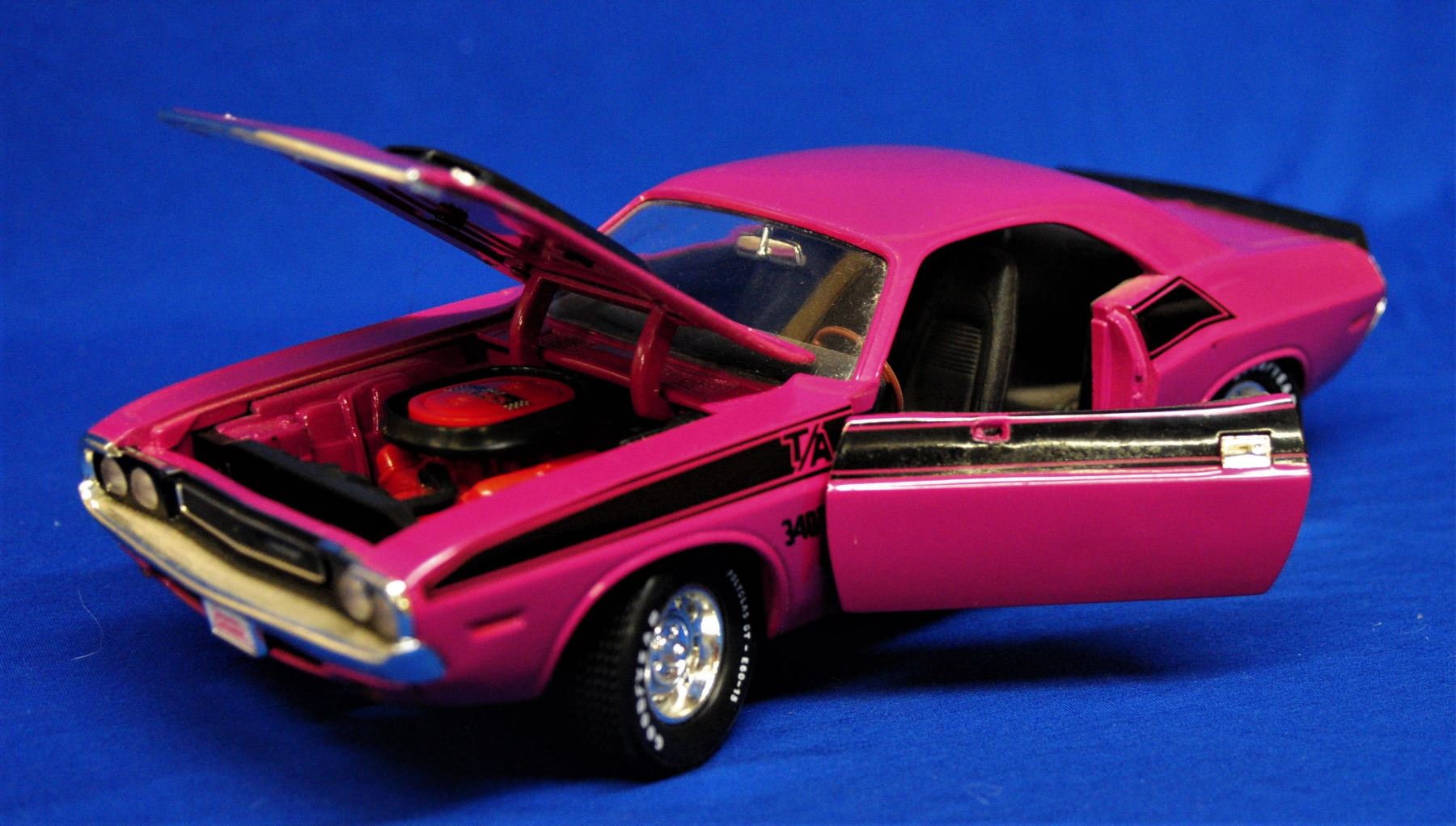 1:18 scale die cast as new 1) 1970 Dodge Challenger T/A missing driver side mirror 2) 1969 Shelby GT 500 Doors open, hood opens and wheels turn