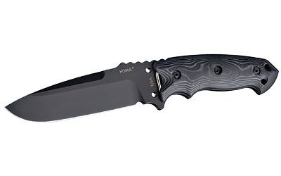 Hogue, EX-F01, 5.5" Fixed Blade Knife, Drop Point Blade, G10 Frame, A2 Black Kote, G-Mascus Black Scales, Black Sheath