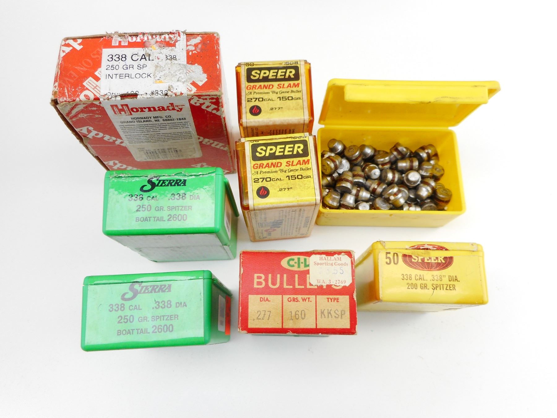 .453" BULLET, .279" BULLET, .277" BULLET, .278" BULLET, .338 CAL BULLETS, .270 CAL BULLETS, .338 CAL SIERRA BULLETS, .338 SPEER BULLETS, , 48 .453" BULLETS, 34 .279" BULLETS, 11 - .277" BULLETS, 5 - .278" BULLETS, 56 .338 CAL BULLETS, 64 .270 SPEER BULLETS 150 GRNS, .338 CAL SIERRA BULLETS APPROX. 100, 40 .388 SPEER BULLETS