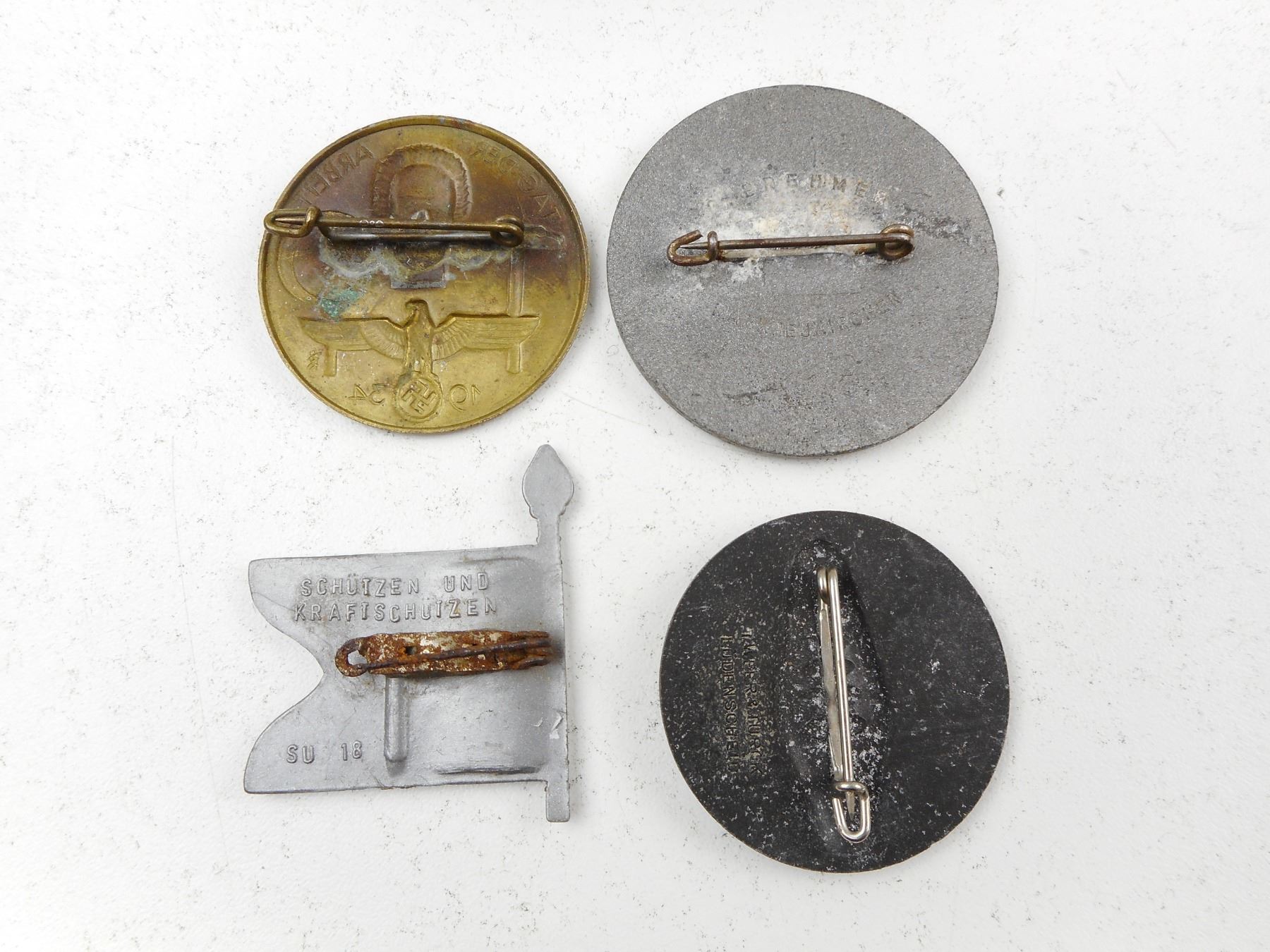 GERMAN WWII TINNIES , (1) LABOUR DAY 1934, (1) MAY DAY 1937 (1) POLITICAL EVENT 1937 , (1) GERMAN FLAG, LOT OF 4