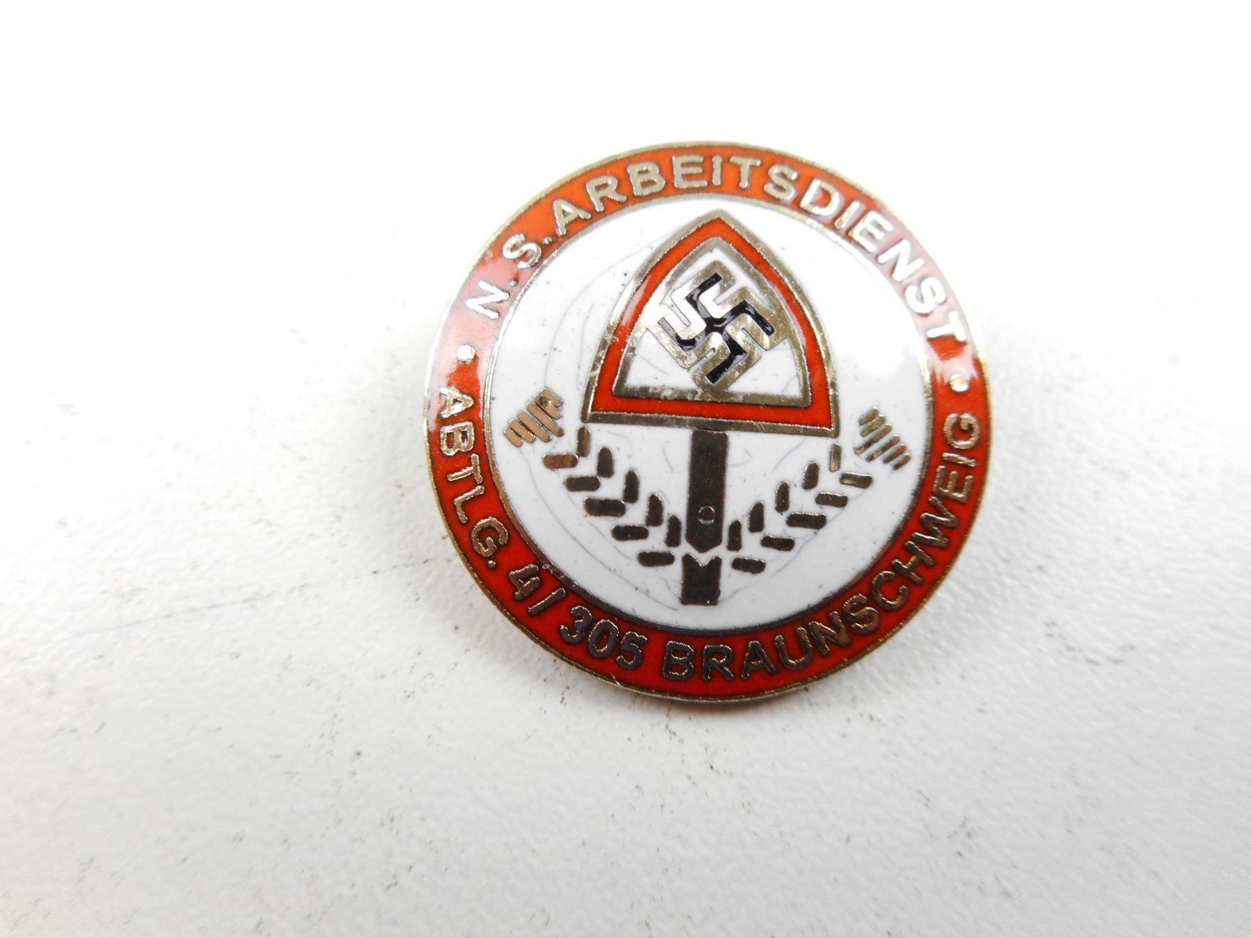 GERMAN WWII PINS & STICK PINS , INCLUDES DLRG, WAFFEN PIN, N.S.ARBEITSDIENST ABTLG 4/305 BRAUNSCHWEIG, LOT OF 9