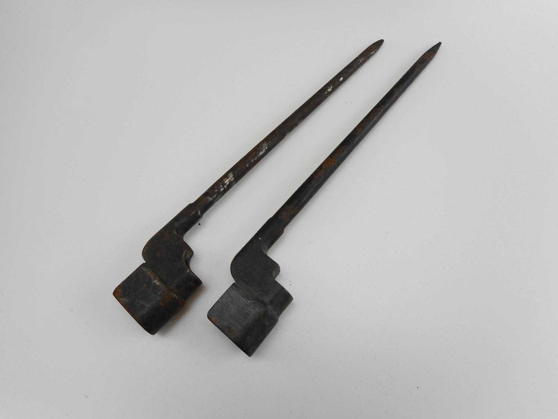 ENFIELD SPIKE BAYONETS , (1) NO VISIBLE MARKS, (1) MARKED NO4 MKII N 67 WITH BROAD ARROW MARK , NO SCABBARDS