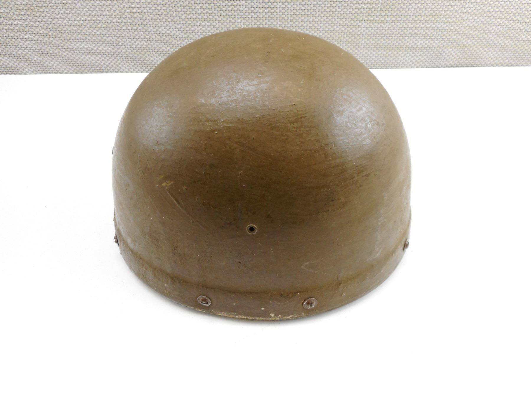 CANADIAN VINTAGE WWII MOTORCYCLE HELMET , INCLUDES STAMPED DTR. M43 WITH CANADIAN BROAD ARROW MARKED, SOME FUR ON SIDES, RESIN TYPE MATERIAL