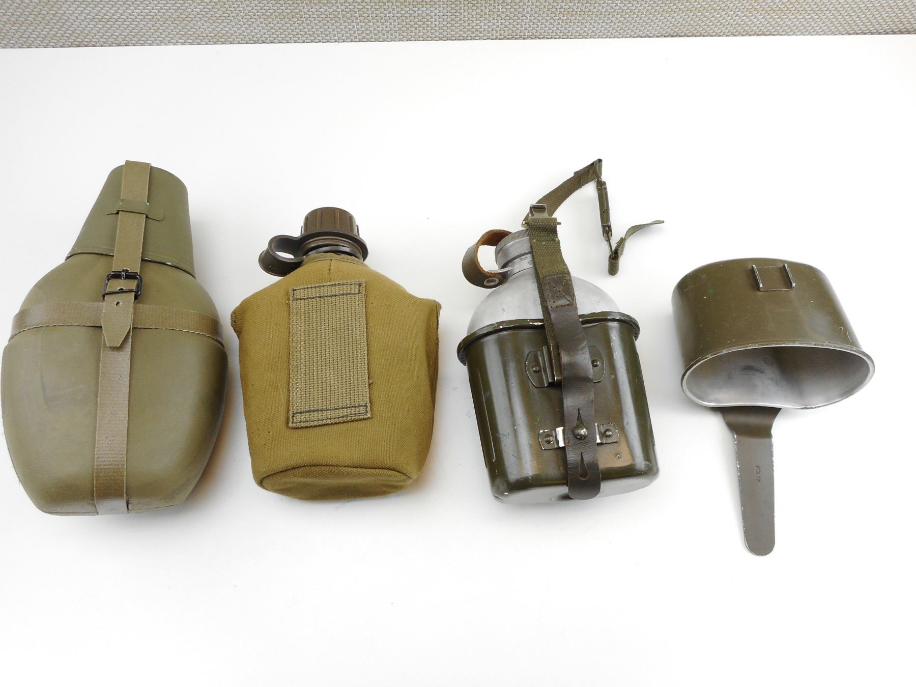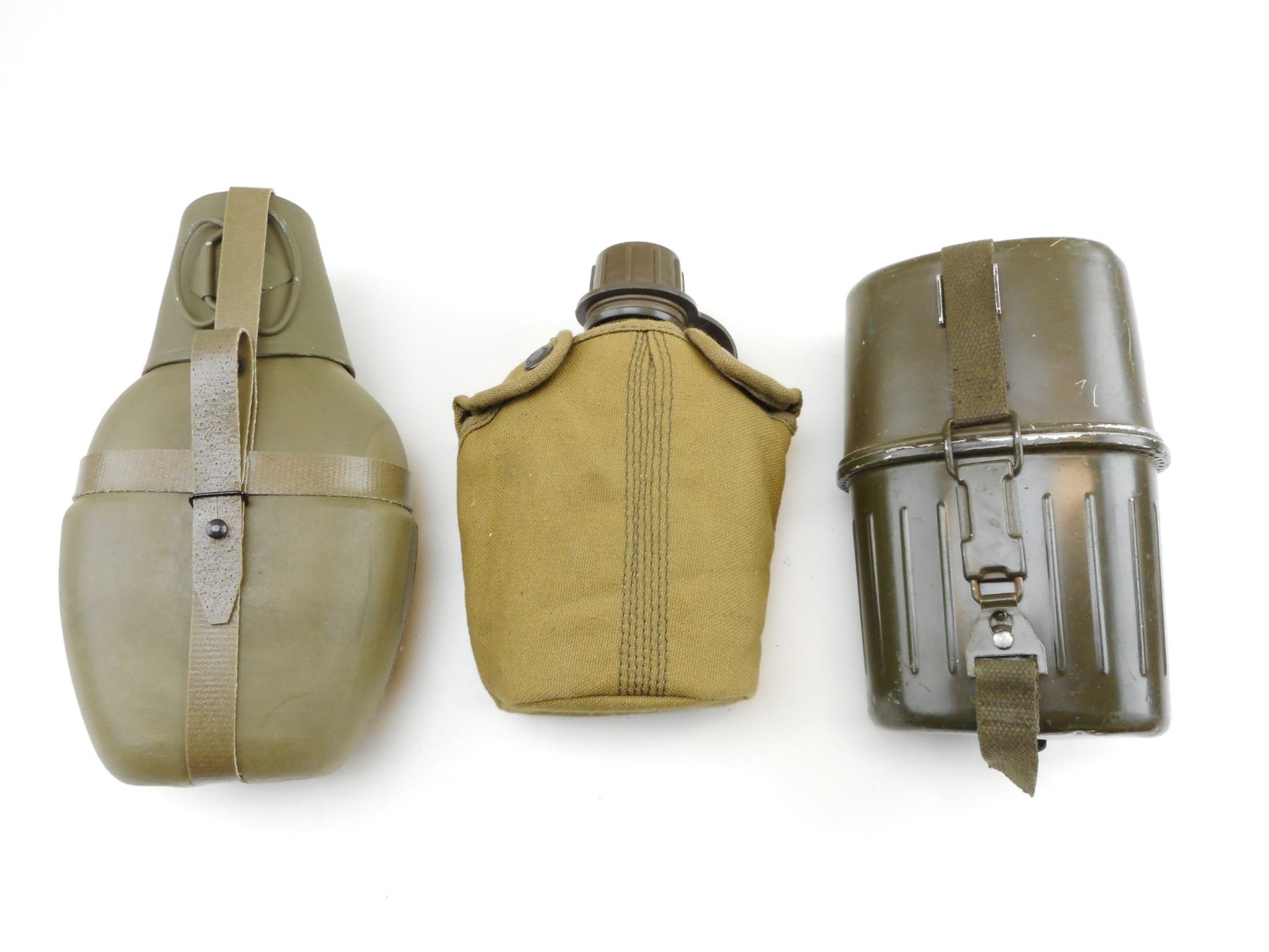 WEST GERMAN CANTEENS & MESS KITS , (2) PLASTIC CANTEENS: (1) WITH COVER, (1) MESS KIT
