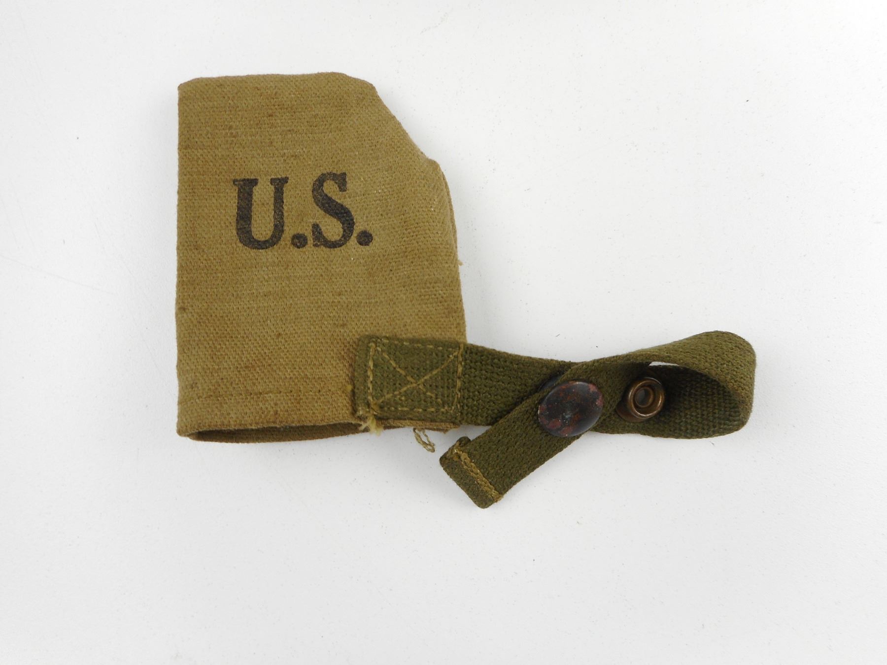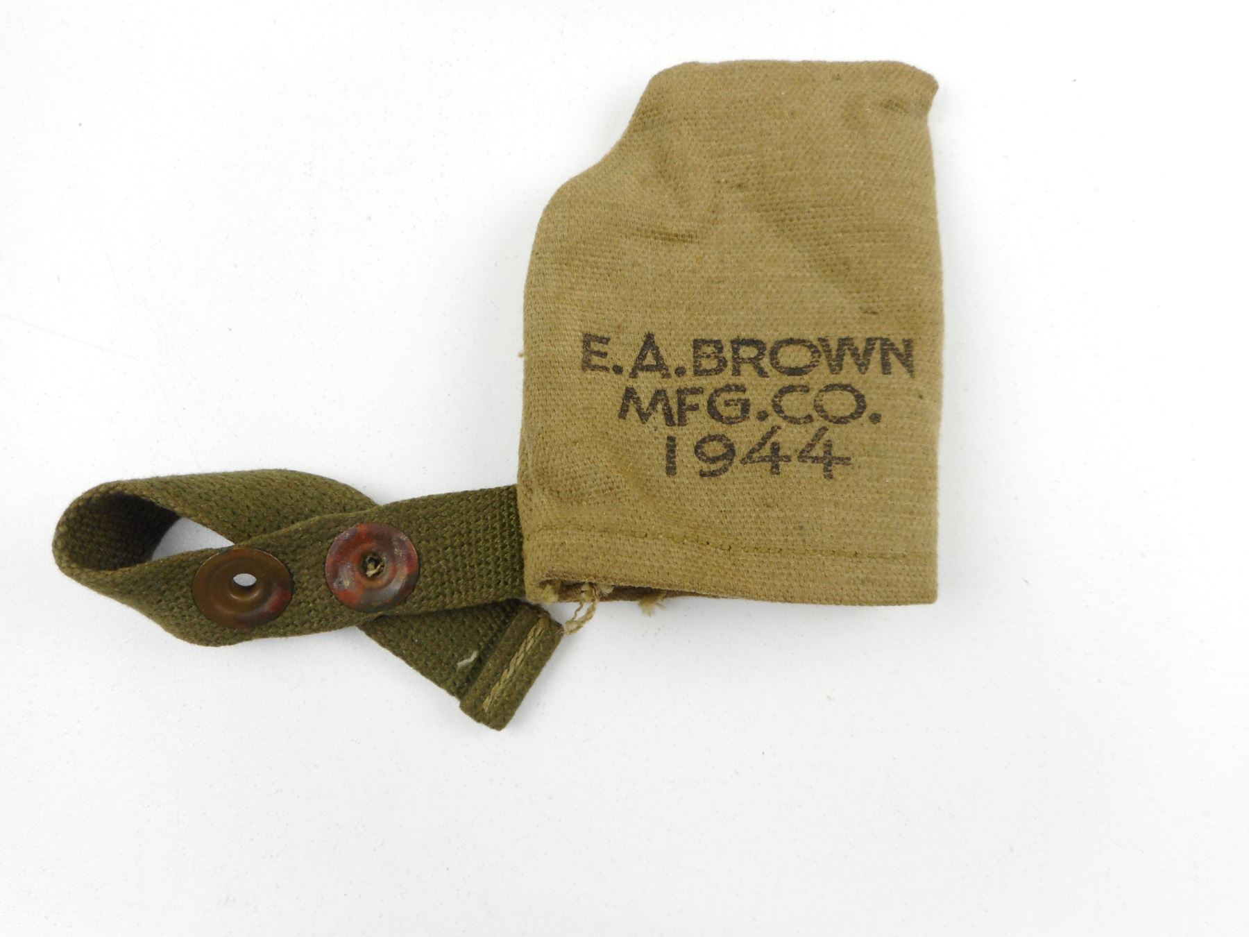 WWII U.S. CARBINE M1 MUZZLE PROTECTOR , GREEN CANVAS STAMPED U.S. AND REVERSE STAMPED E.A.BROWN MFG.CO. 1944