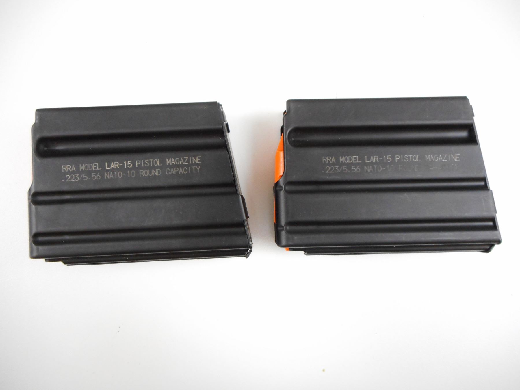 223/5.56 NATO PISTOL MAGAZINES , RRA MODEL LAR-15 PITOL MAGAZINES 10 ROUND CAPACITY, LOT OF 2