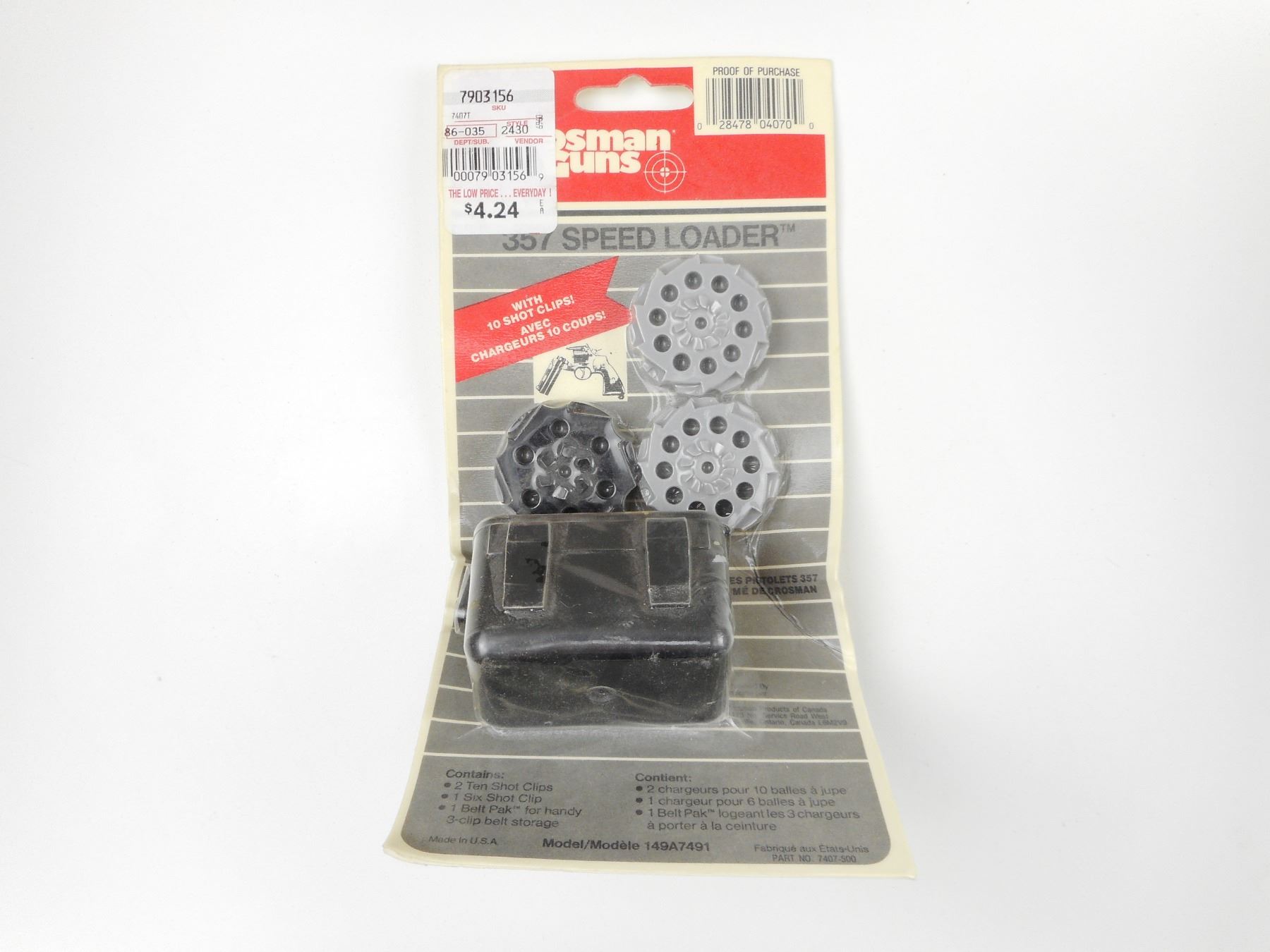 CROSMAN AIRGUNS 357 SPEEDLOADER KIT & ARCOSTEEL THERMOS , (1) CROSMAN AIRGUN 357 SPEEDLOADERS IN ORIGINAL PACKAGING: (2) TEN SHOT CLIPS, (1) SIX SHOT CLIP, (1) BELT PAK, (1) ARCOSTEEL THERMOS