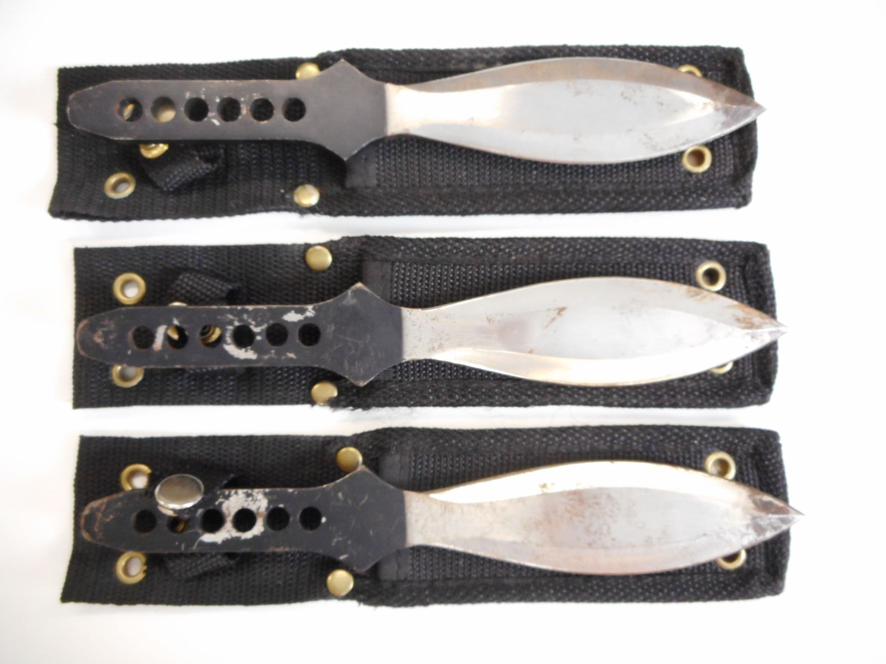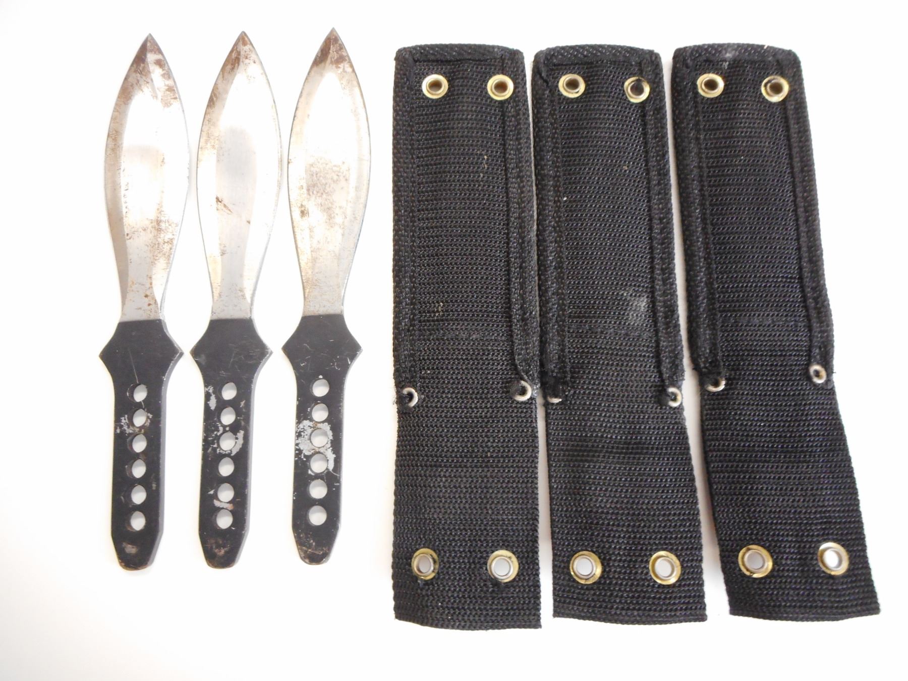 DOUBLE EDGED BELT KNIVES WITH SHEATHS , TOTAL LEGNTH 8.5", BLADE LENGTH 5", NO GRIP, IN SHEATHS, LOT OF 3