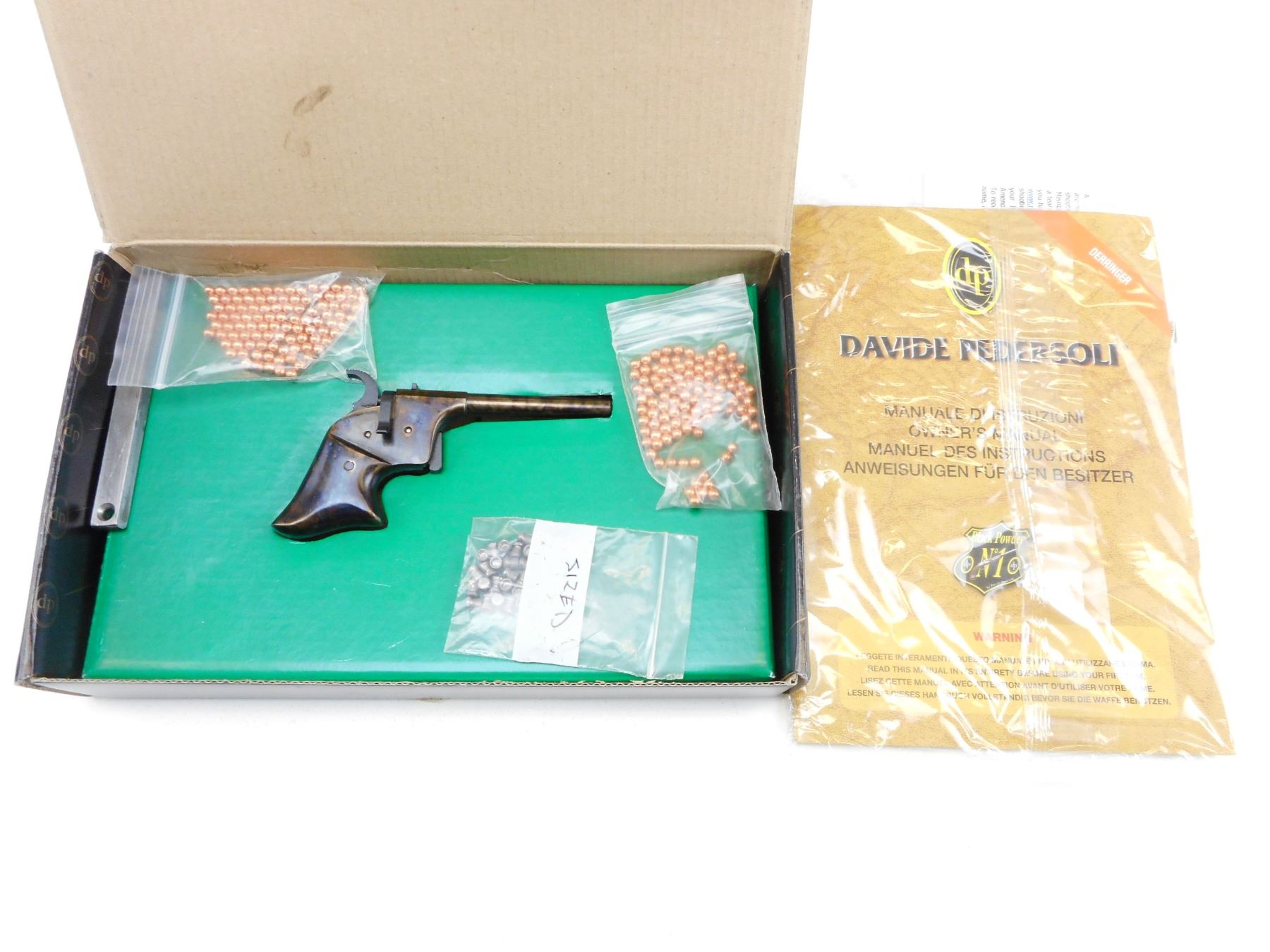 DAVIDE PEDERSOLI BB & PERCUSSION CAP RIDER DERRINGER , WITH MANUAL, BB'S AND BOX
