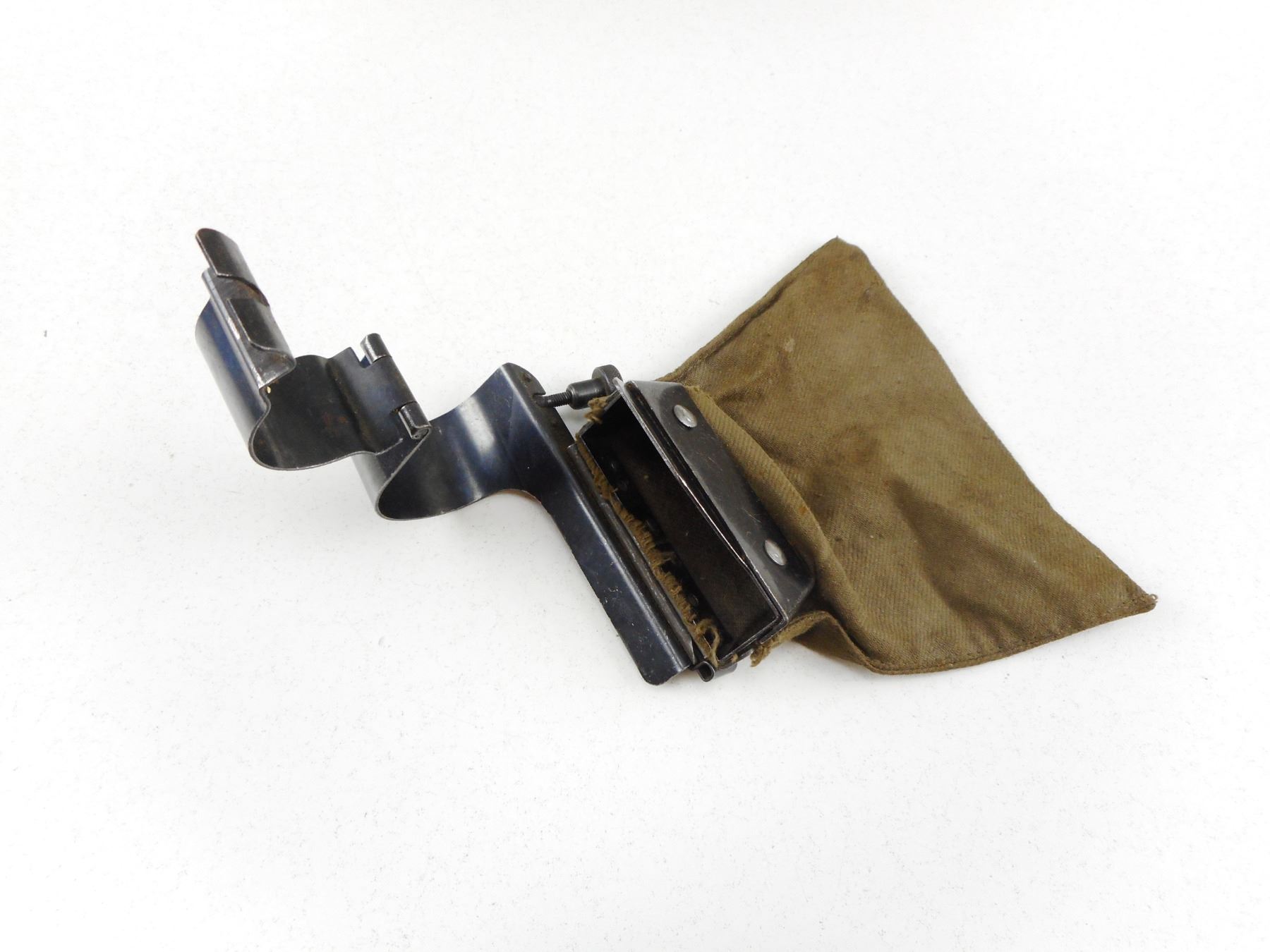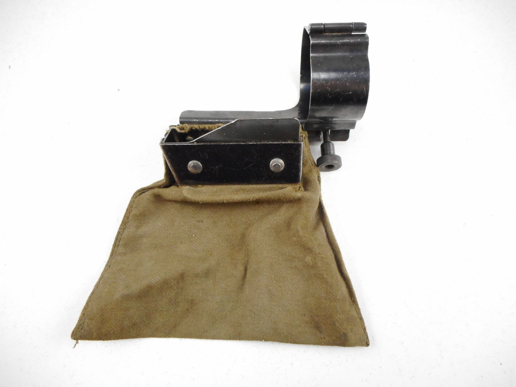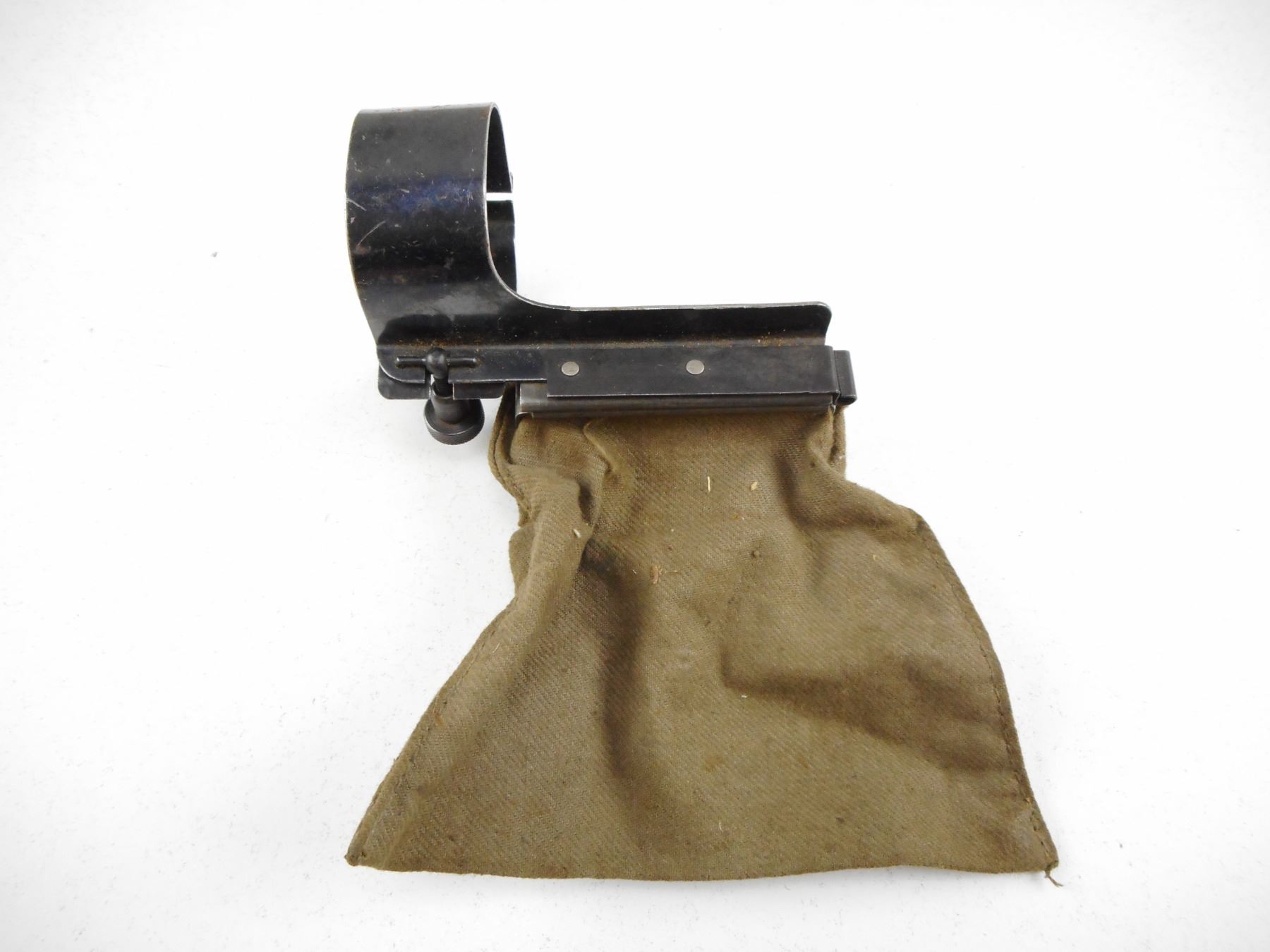 SWEDISH MAUSER BRASS COLLECTOR BAG , 1ST TYPE FOR SWEDISH 1896 & 1896/38 MAUSER. ISSUED FOR RANGE USE- CLAMPS ON RECEIVER SO THAT BAG IS PLACED NEXT TO THE RIGHT HAND SIDE OF BOLT TRACK