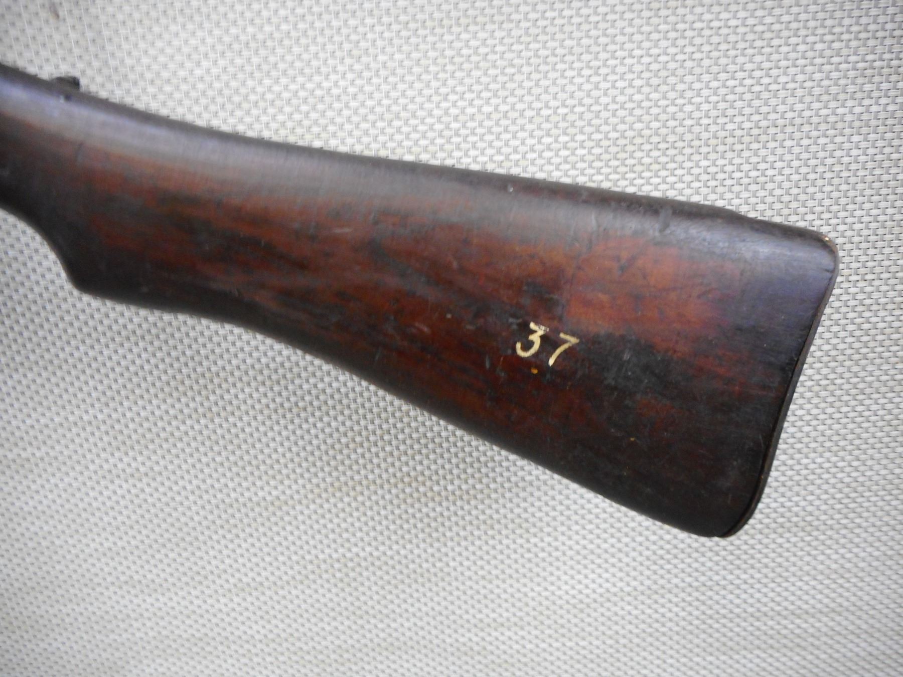 NEW ZEALAND MARTINI ENFIELD WOOD STOCK , WITH METAL BUTT PLATE, SIDE OF STOCK ENGRAVED STAMP DP; 512 ? 4-67, N?Z 15087, OTHER SIDE WITH STAMPED 37, FULL LENGTH APPROX 42 1/4"