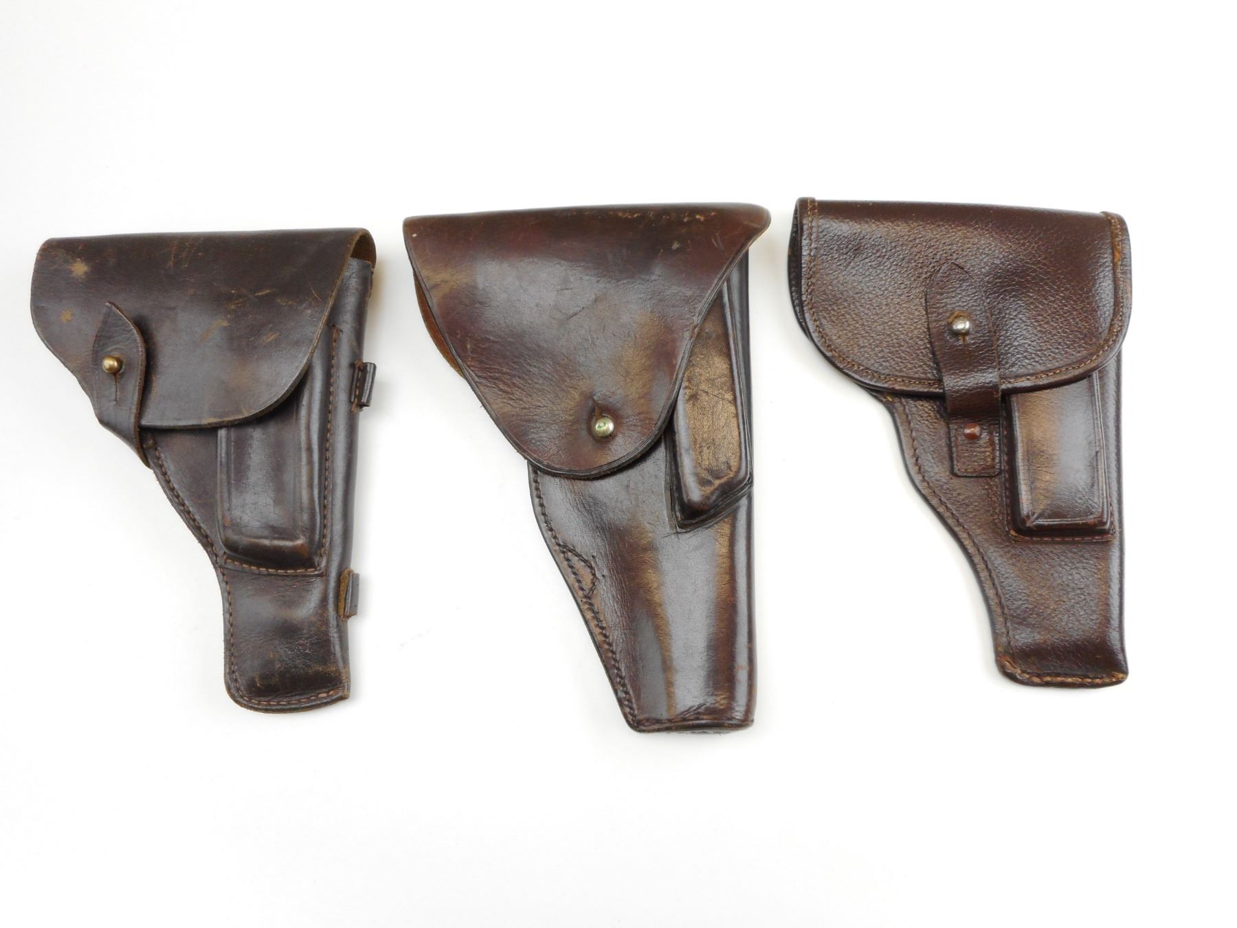 ASSORTED LEATHER HOLSTERS , (1) WITH WORN STAMP INSIDE, LOT OF 3