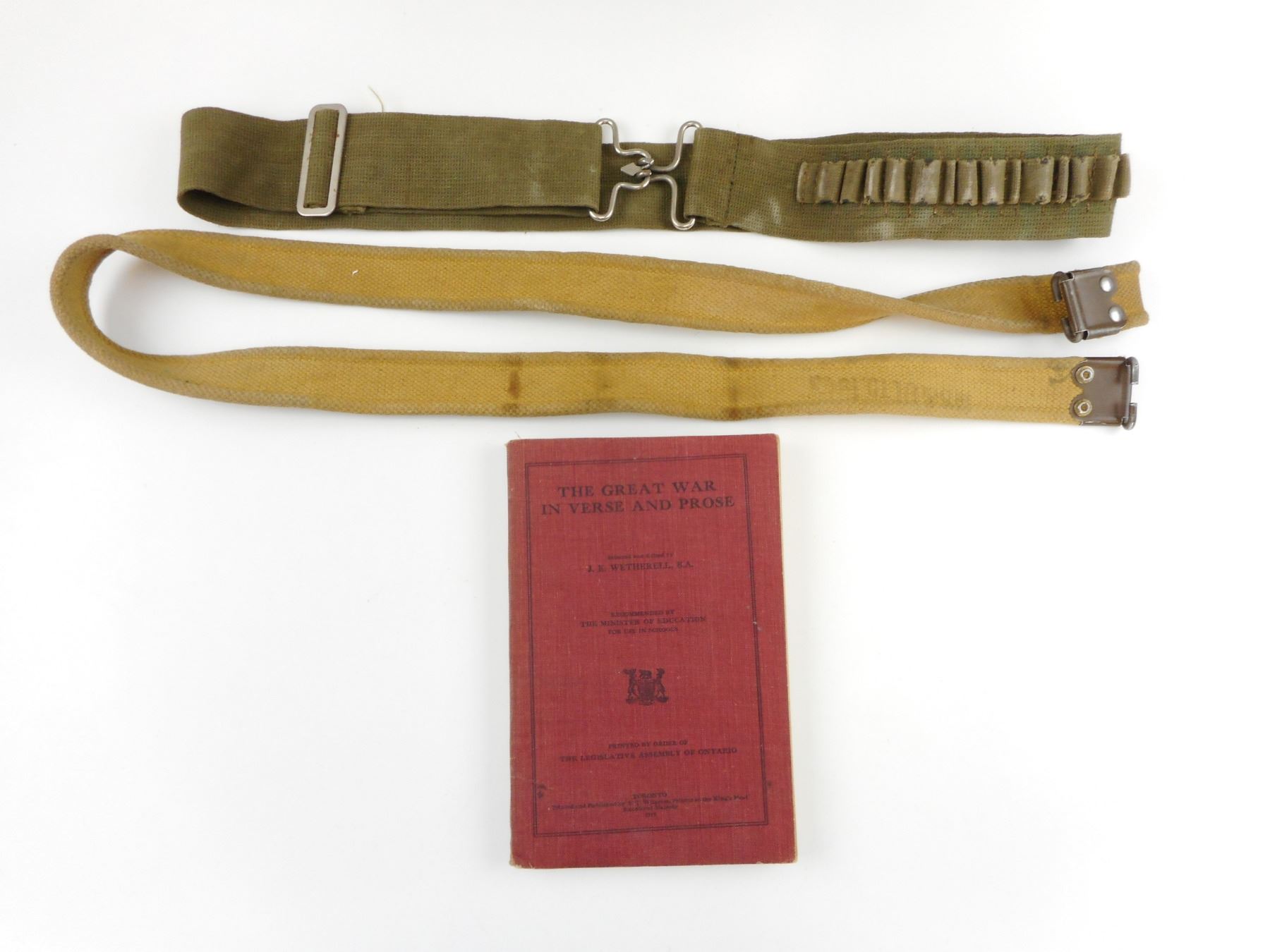 Lot 9817 WWI BOOK: THE GREAT WAR IN VERSE & PROSE & CANVAS MILITARY BELTS